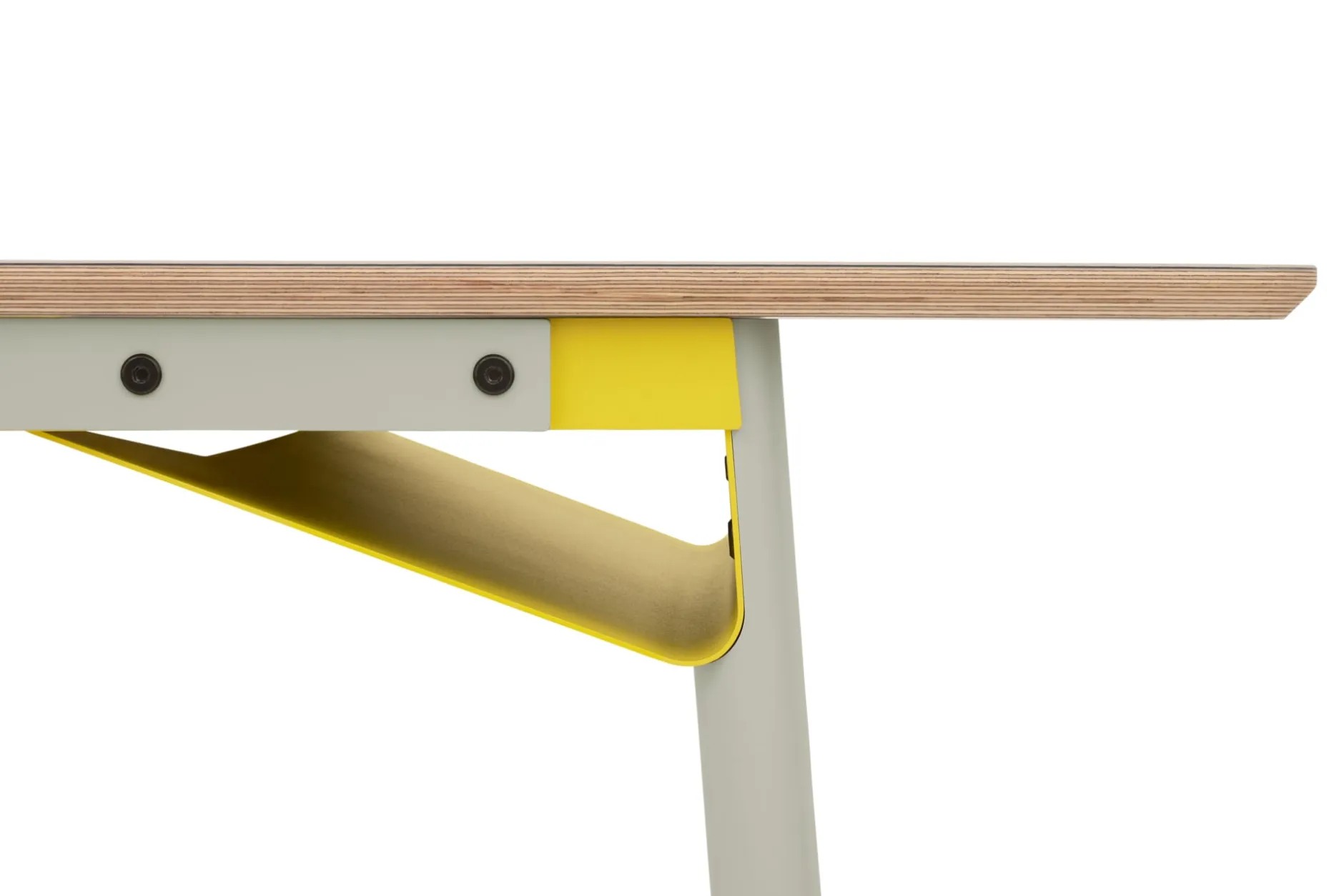 Die Tischplatte für das Tischgestell ZEHDENICKER in der perfekt profilierten Kantenform und gefertigt aus Birke Multiplex mit einem Belag aus hochwertigem Linoleum in Hellgrau. In den Größen 160 cm und 220 cm.
