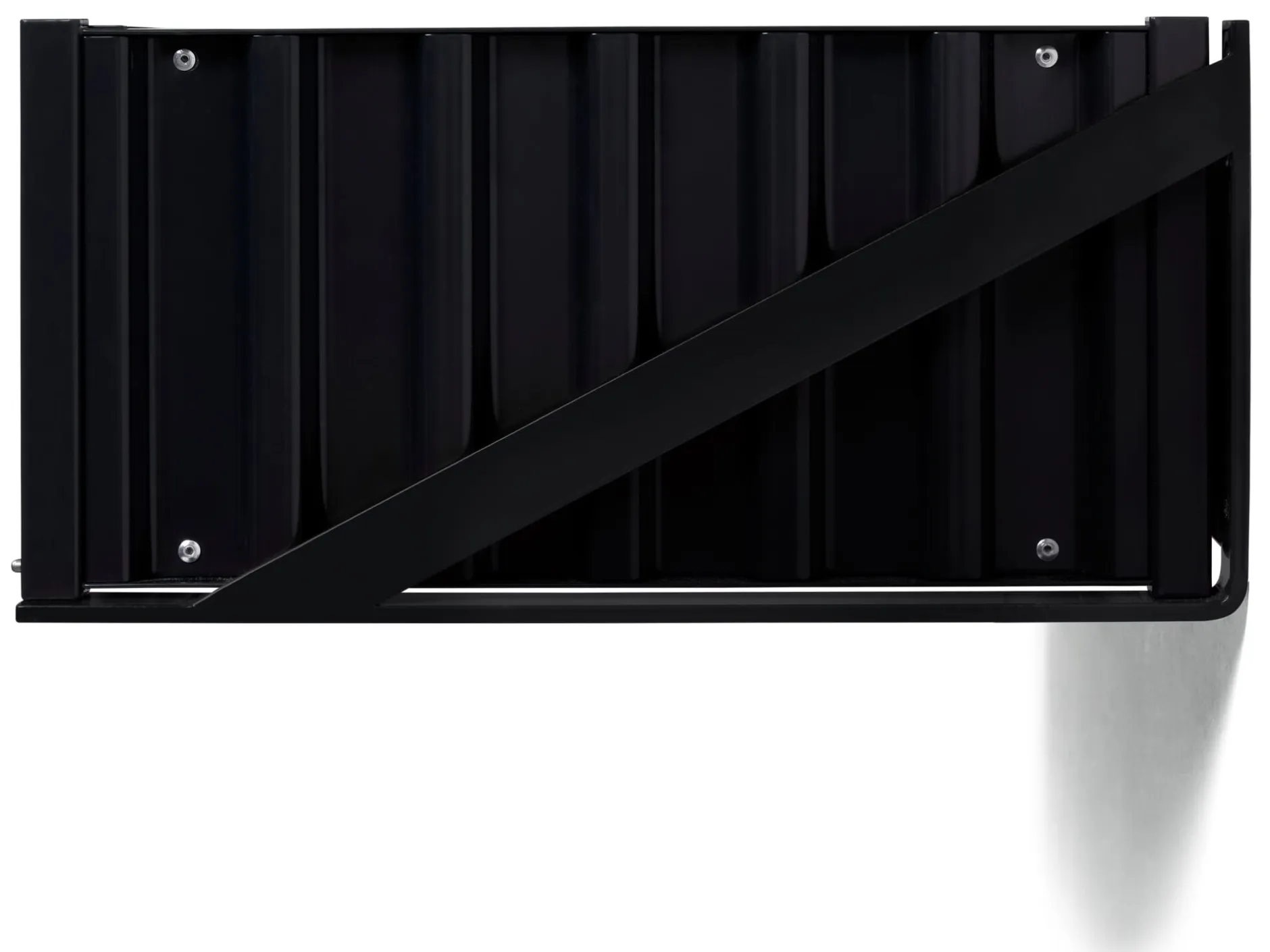 Die Wandhalterung für den CONTAINER DS FLAT. Sie macht aus dem flachen Container eine Wandkonsole, die in verschiedenen Montagehöhen ihren Zweck erfüllen kann: in Fluren oder Arbeitssituationen als Ablage für Vielerlei, über Kopfhöhe montiert als Ablage an Garderobenplätzen.