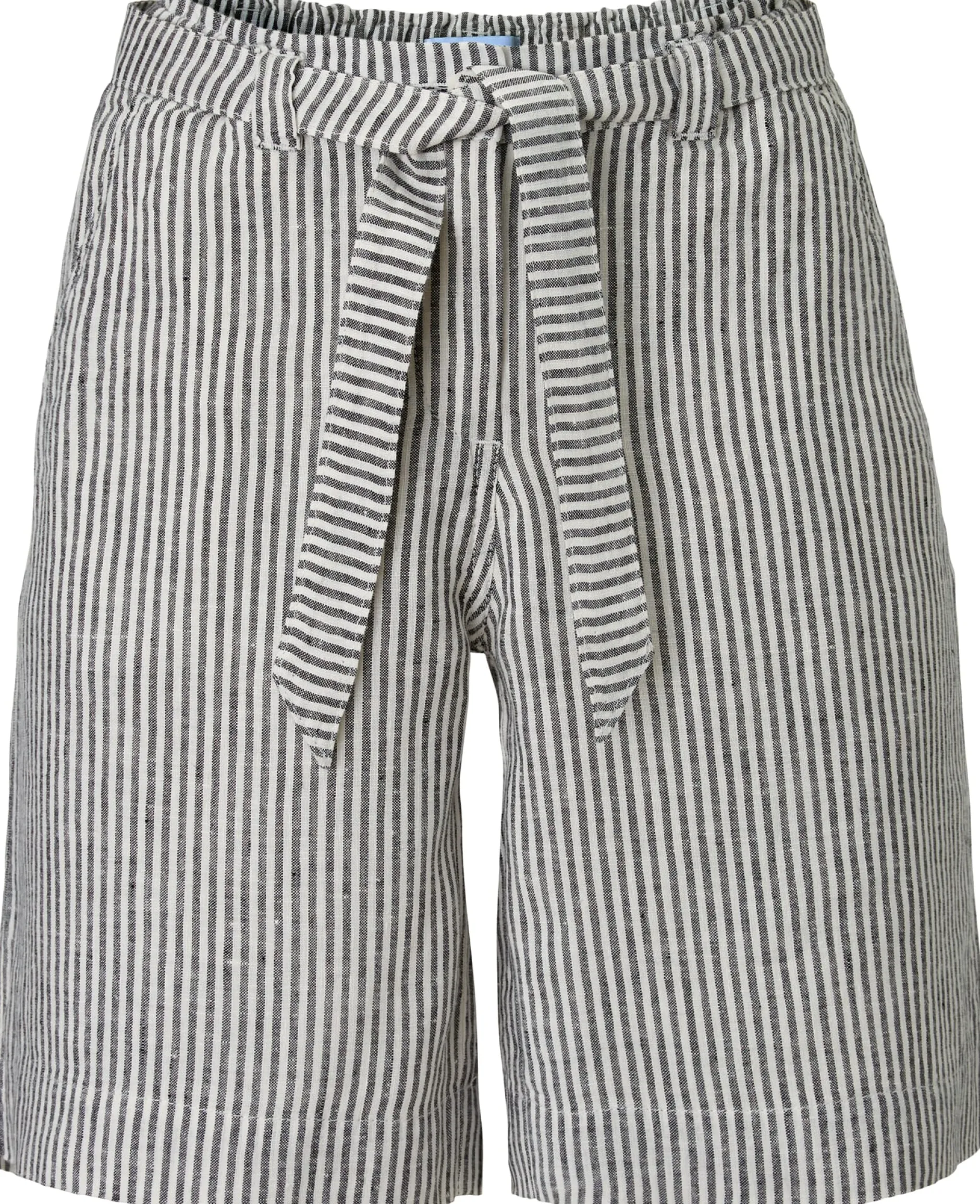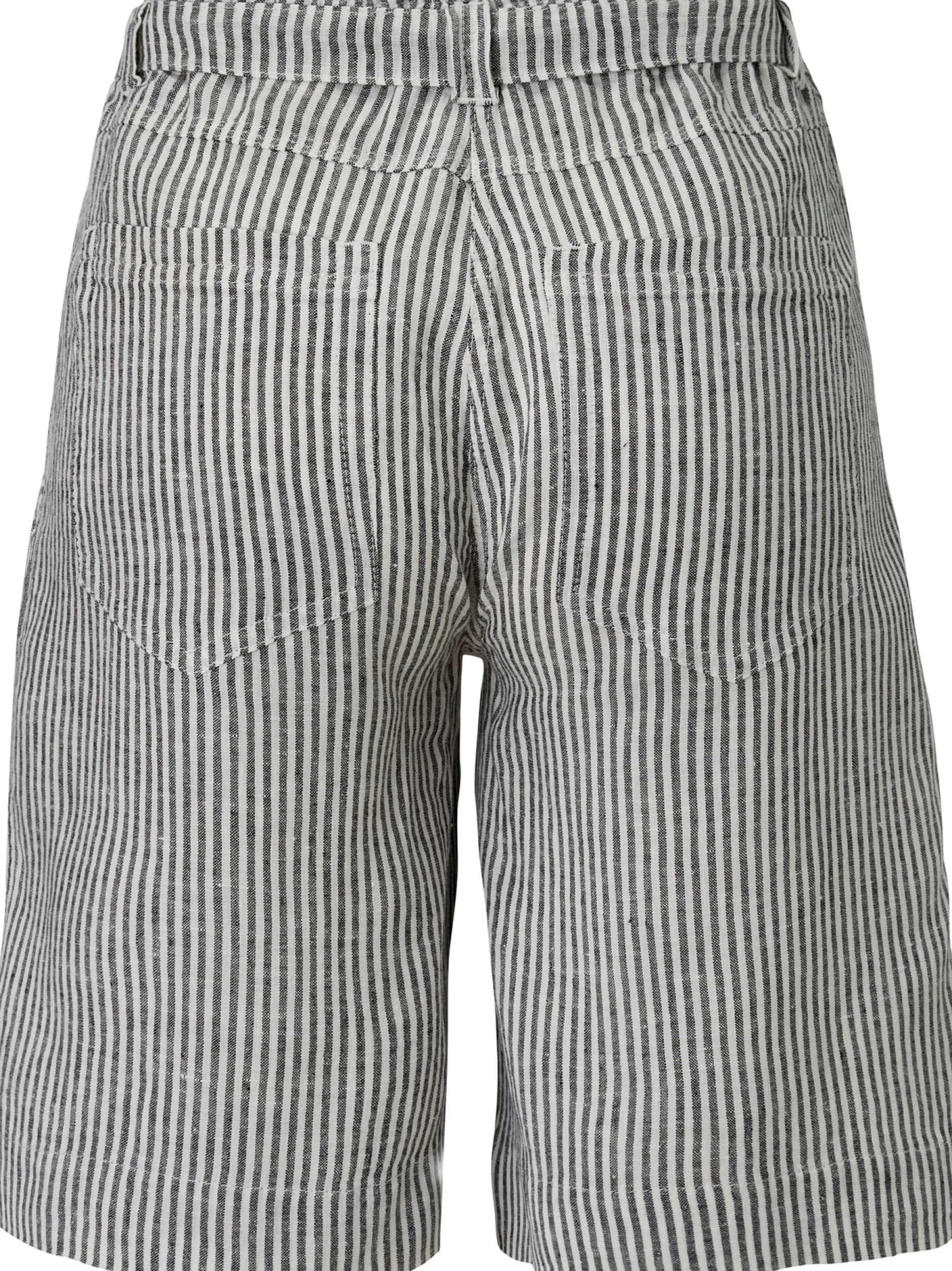 Luftige Shorts aus reinem Leinen, lässig im Stil, mit eleganten Längsstreifen – die ideale Begleiterin für den Sommer. Leinen ist das Material der Wahl für die warme Jahreszeit, denn es ist leicht und besonders atmungsaktiv. Wir haben uns hier bewusst für europäisches Leinen entschieden: Der Stoff stammt aus Frankreich, der Flachs dafür wird in den Niederlanden angebaut. Die Shorts sind mit einem integriertem Gürtel aus Oberstoff gearbeitet und werden mittels Reißverschluss und Knopf geschlossen. Für mehr Bewegungsfreiheit sorgt der Teilgummibund hinten. In den zwei Seitentaschen und den zwei aufgesetzten Gesäßtaschen lassen sich Kleinteile des täglichen Bedarfs griffbereit verstauen.