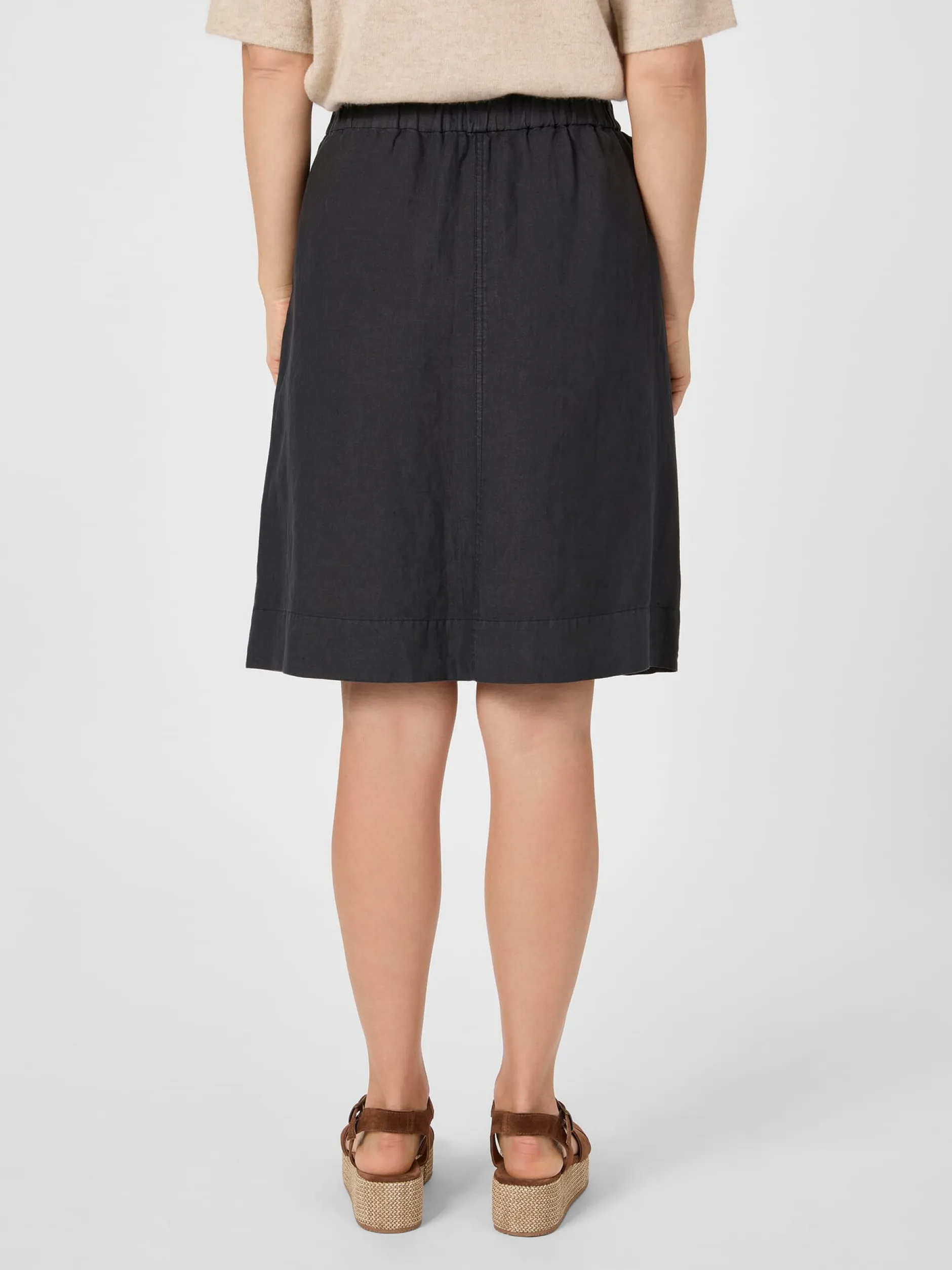 Diesen locker fallenden Midirock lassen wir aus einer feinen und zugleich strapazierbaren Popeline aus hautsympathischer, kontrolliert biologisch angebauter Baumwolle fertigen. Der dicht gewebte, leinwandbindige Stoff liegt angenehm glatt auf der Haut und zeigt einen zarten Glanz. Geschnitten ist der knielange Rock in leichter A-Linie. Der elastische Bund mit integriertem Tunnelzug ermöglicht eine individuelle Weitenregulierung und sorgt für einen guten und bequemen Sitz. Zwei in die Seitennaht eingesetzte Taschen bieten Platz für Kleinteile des täglichen Bedarfs. Dank seiner schlichten, puristischen Optik lässt sich der Rock vielseitig kombinieren – mit legeren wie eleganten Outfits.
