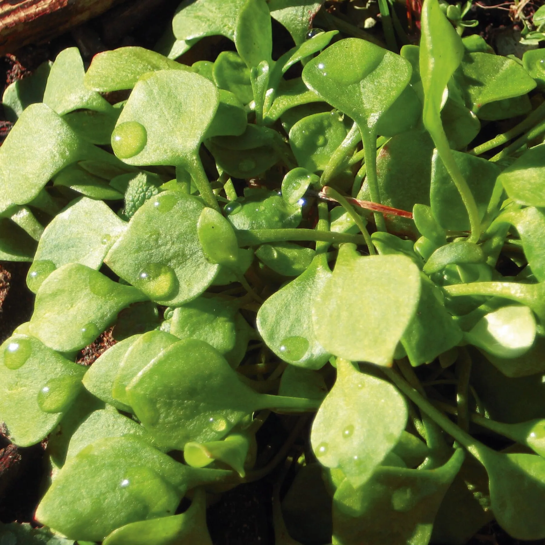 Diese auch als Kubaspinat oder Postelein bekannte Pflanze stammt aus dem westlichen Nordamerika und war eine wichtige Nutzpflanze der indigenen Bevölkerung. Der „indian lettuce“ diente auch den Siedlern als Nahrung; sie brachten ihn um 1749 nach Westeuropa. Charakteristisch sind die kreisrunden, fleischigen Blätter, die roh in Blattsalaten oder als Gemüse gedünstet verzehrt werden. Winterportulak eignet sich hervorragend zur Aussaat im Spätsommer auf abgeernteten Beeten; die Pflanze wird etwa 20 cm hoch und hält Fröste bis zu –10 °C unbeschadet aus. Sie sät sich reichlich selbst aus.