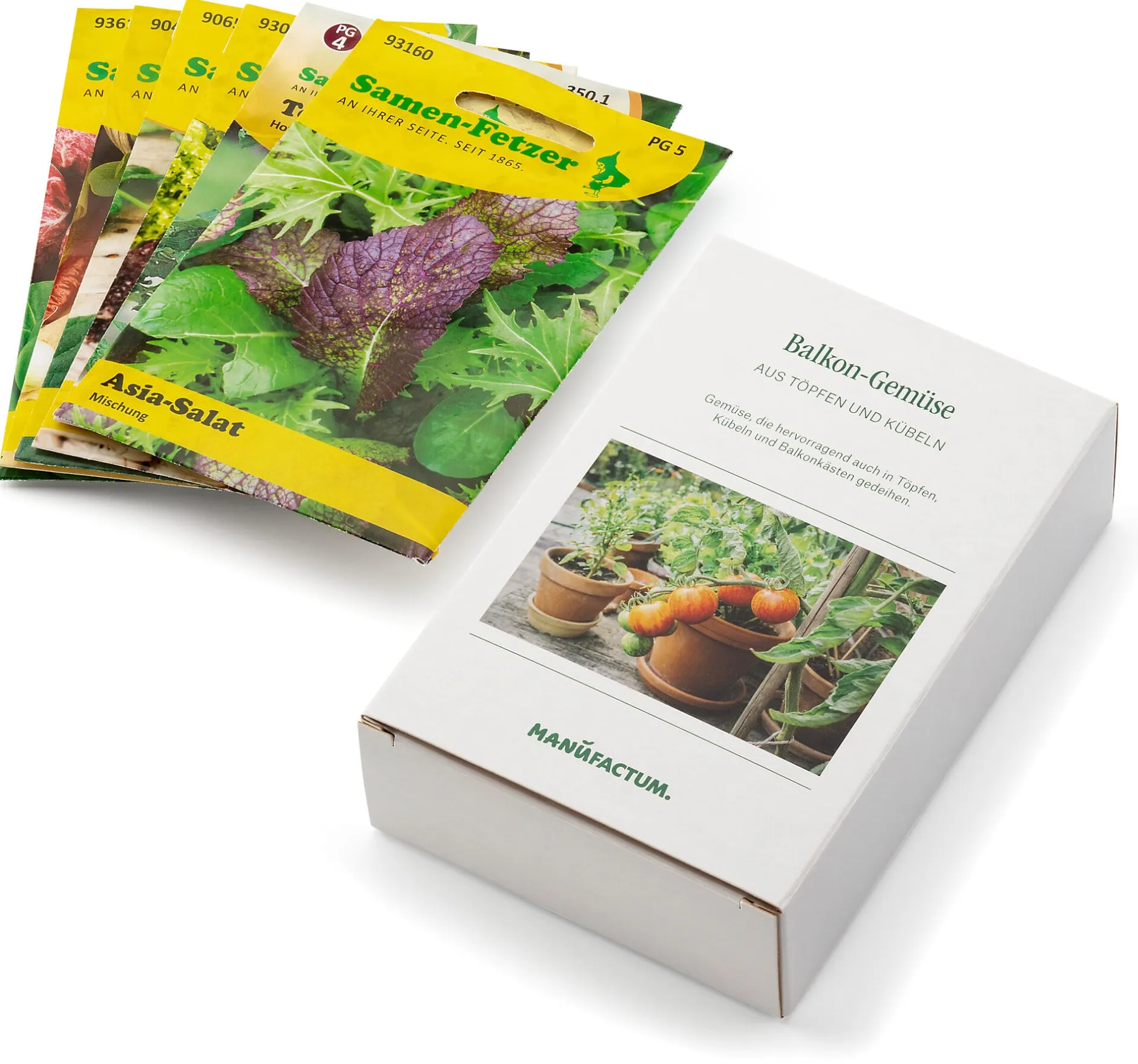 - Gemüse- und Kräuter-Saatgut für Kästen und Töpfe