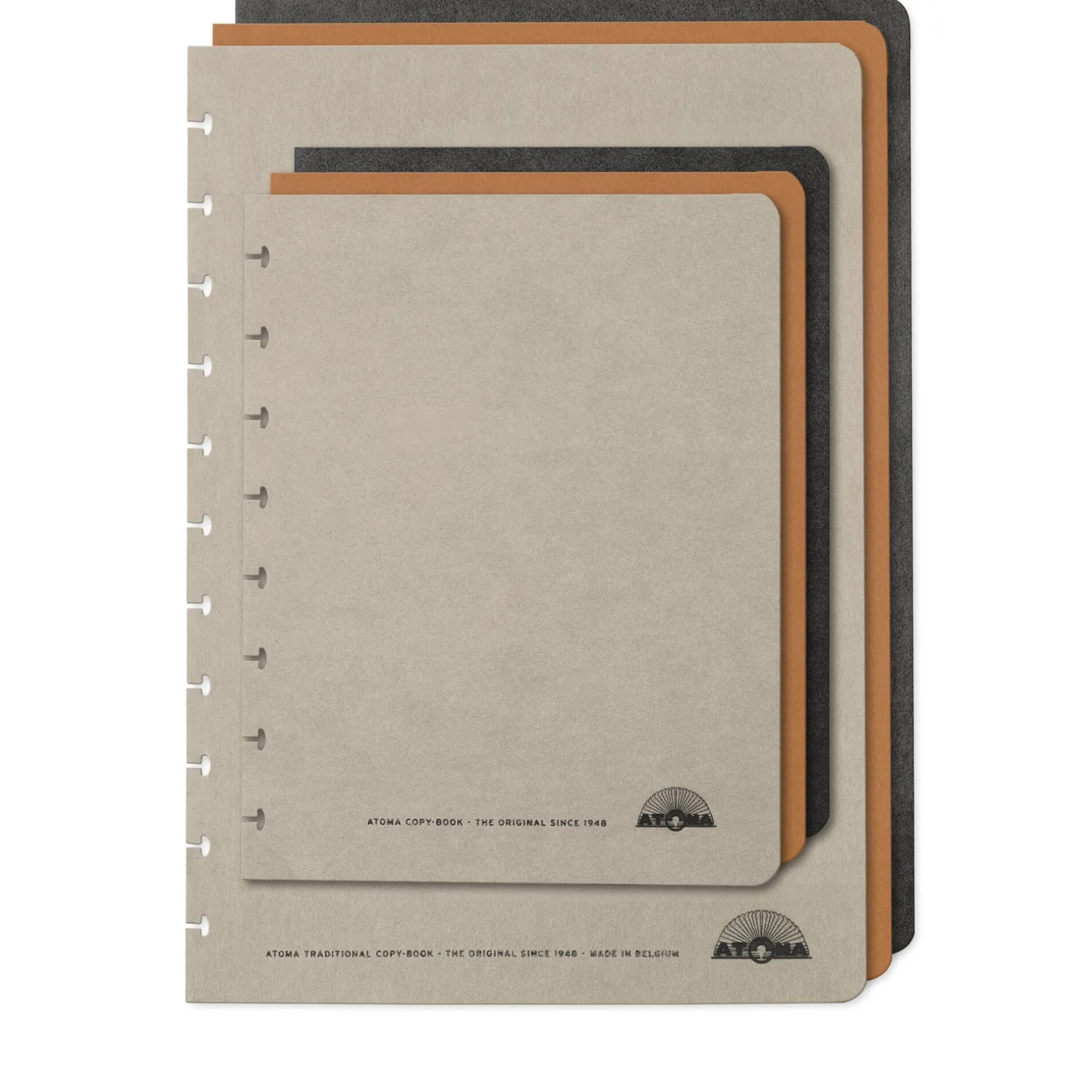 Das rund 70 Jahre alte belgische Notizbuchsystem Atoma besteht ausschließlich aus rollenden Ringen und fliegenden Blättern, wobei die Ringe die Blätter am Fliegen und die Blätter die Ringe am Rollen hindern – beides bleibt aber dank einer patenten Speziallochung der Blätter stets leicht voneinander lösbar. Sie können die diversen Formular-Einlagen Ihrer selbst zusammengestellten Notizbücher also jederzeit ergänzen, verändern und nach Bedarf mischen – auch mit Formularen, Kalender- oder Adressbuchdrucken, die Sie per PC und Drucker auf den Blanko-Formularen selbst erzeugen und mit dem Atoma-Locher mit der passenden Lochung versehen.