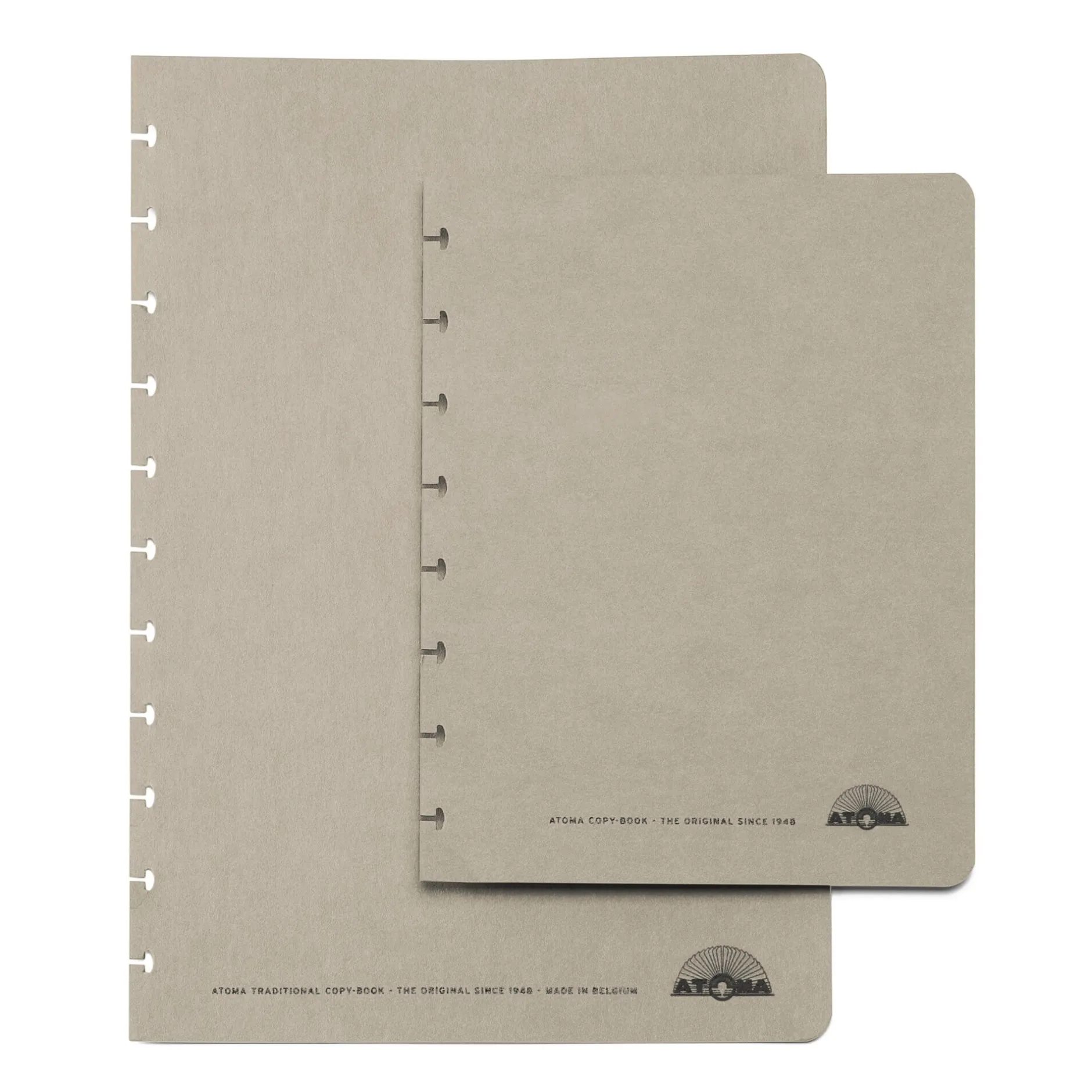 Das rund 70 Jahre alte belgische Notizbuchsystem Atoma besteht ausschließlich aus rollenden Ringen und fliegenden Blättern, wobei die Ringe die Blätter am Fliegen und die Blätter die Ringe am Rollen hindern – beides bleibt aber dank einer patenten Speziallochung der Blätter stets leicht voneinander lösbar. Sie können die diversen Formular-Einlagen Ihrer selbst zusammengestellten Notizbücher also jederzeit ergänzen, verändern und nach Bedarf mischen – auch mit Formularen, Kalender- oder Adressbuchdrucken, die Sie per PC und Drucker auf den Blanko-Formularen selbst erzeugen und mit dem Atoma-Locher mit der passenden Lochung versehen.