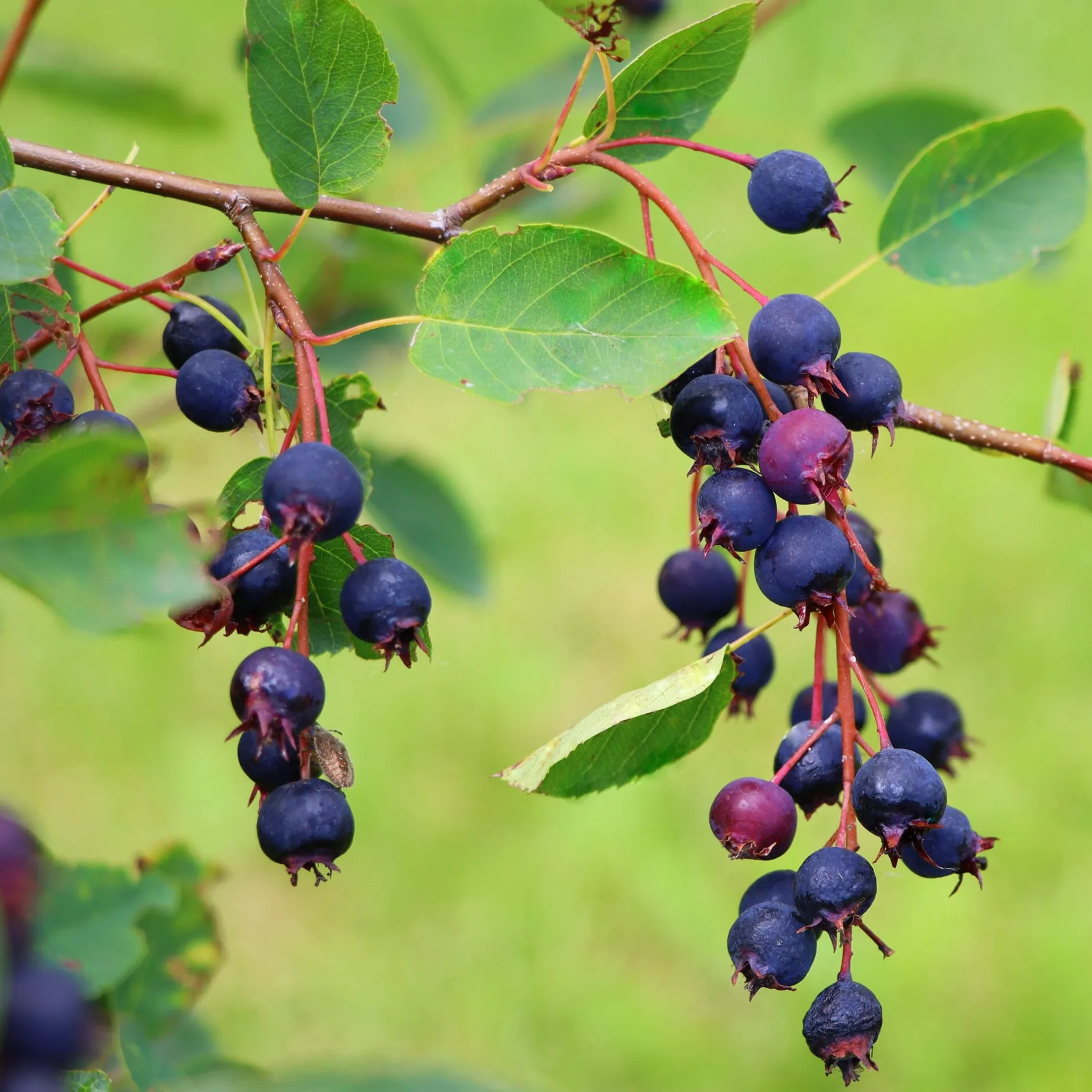 Die heimische Felsenbirne bildet nach der überreichen weißen Blüte im April und Mai viele kleine, blauschwarze Früchte mit süßem Heidelbeeraroma. Sie reifen ab Juli, können getrocknet, zu Marmelade verarbeitet, vor allem aber frisch verzehrt werden. Prächtige, orangerote Laubfärbung im Herbst.