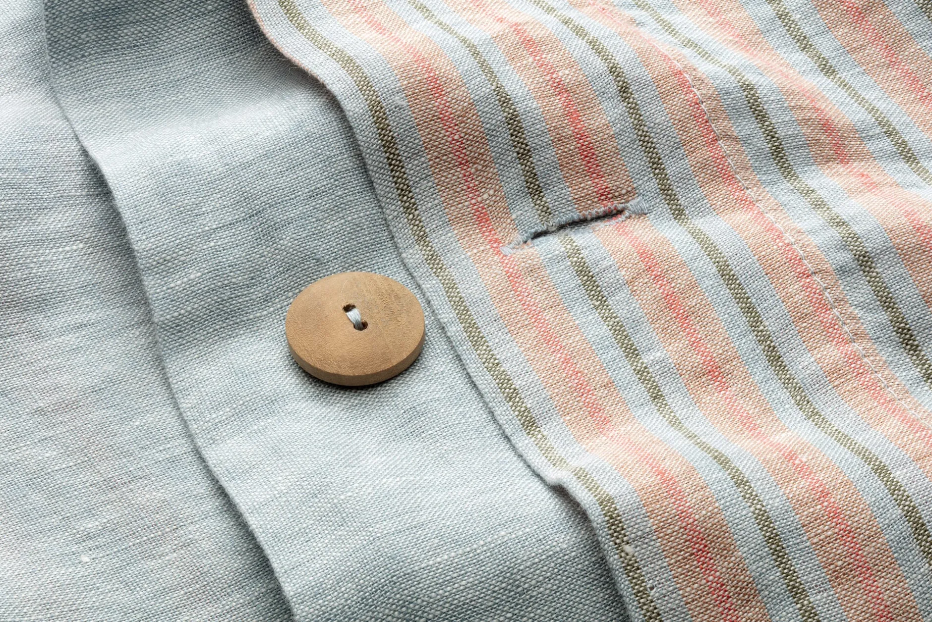 Kühlende Wirkung in sommerlich heißen Nächten hat der Bettbezug selbst, dafür sorgt das Leinen, das hier in Leinwandbindung gewebt ist. Leinen kann gut Wärme leiten und viel Feuchtigkeit aufnehmen, ohne sich dabei feucht anzufühlen. Da es die Feuchtigkeit auch schnell wieder ableitet, wird es als angenehm kühlend empfunden. Zudem ist die Naturfaser von Haus aus antistatisch und zieht kaum Staub an. Aufgrund ihrer glatten Oberfläche sind Leinengewebe hautfreundlich und leicht zu reinigen. Das Leinen für diese Bettbezüge ist vorgewaschen und hat nichts mehr von der für Leinen typischen anfänglichen Steifigkeit. Mit jedem Waschen wird es zudem noch weicher. Mit einem Flächengewicht von 140 g/qm ist das Gewebe eher leicht und schmiegt sich angenehm an den Körper an. Der Bezug wird mit Holzknöpfen geschlossen.