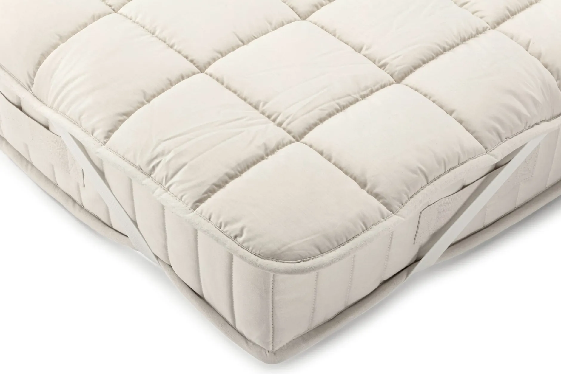 Füllung 50% Schurwolle, 50% Seide. Herkunft Europa, China, Großbritannien. Flächengewicht 910 g/qm. Bezug aus 100% Baumwolle. Herkunft Türkei, Pakistan. Mit Karosteppung. Elastische Bänder an den Ecken sorgen für guten Halt auf der Matratze. Hergestellt in Deutschland.