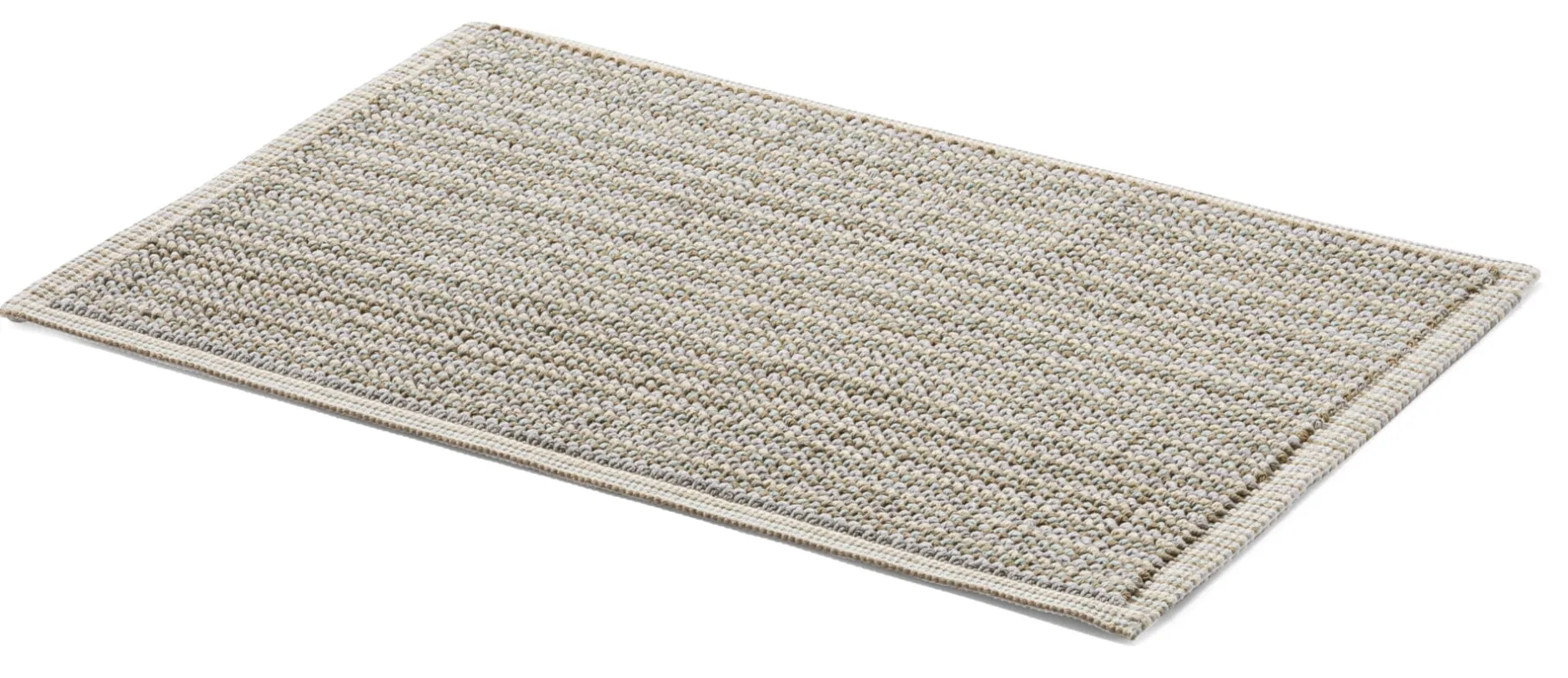 Dieser Bad- und Duschvorleger kommt aus Sardinien und ist in verschiedener Hinsicht ungewöhnlich: zum einen wegen seiner (tritt-)festen, voluminösen und dichten Struktur, und zum anderen wegen der besonderen Herstellungsweise. Die Badematte wird mit drei Fadensystemen in einem Verfahren gewebt, das der für Samt verwendeten Epinglé-Technik ähnlich ist – aus einem Vierfachzwirn in der Grundkette, einer aus 18 gezwirnten Garnen bestehenden Schlinge und einem besonders starken Achtfachzwirn im Schuss. Traditionell ist dies ein Verfahren für das Weben fester Wollteppiche, hier wird es auch – unter Rückgriff auf Baumwolle statt Wolle – für die Fertigung dieser Badematte angewandt, die sich dessen ungeachtet aber auch als Bettvorleger für das Schlafzimmer empfiehlt.