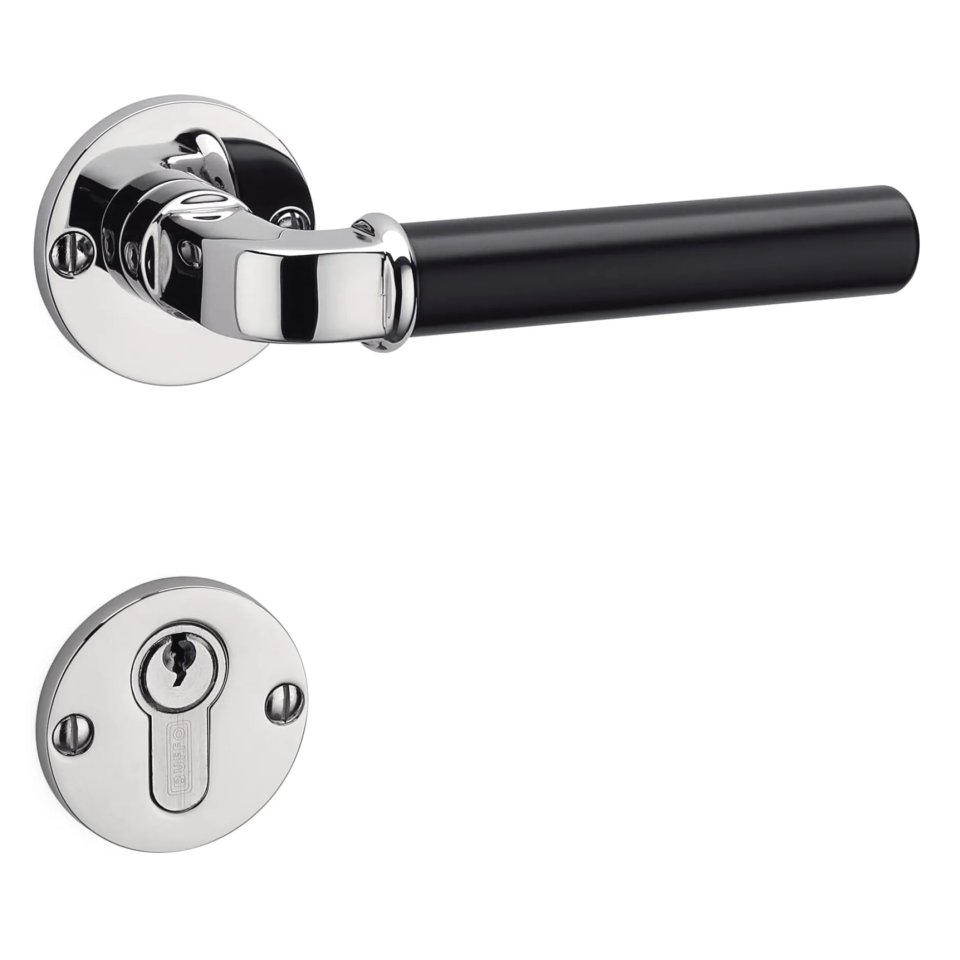 - Veredelte Oberfläche: vernickelt und poliert, Griff schwarz lackiert