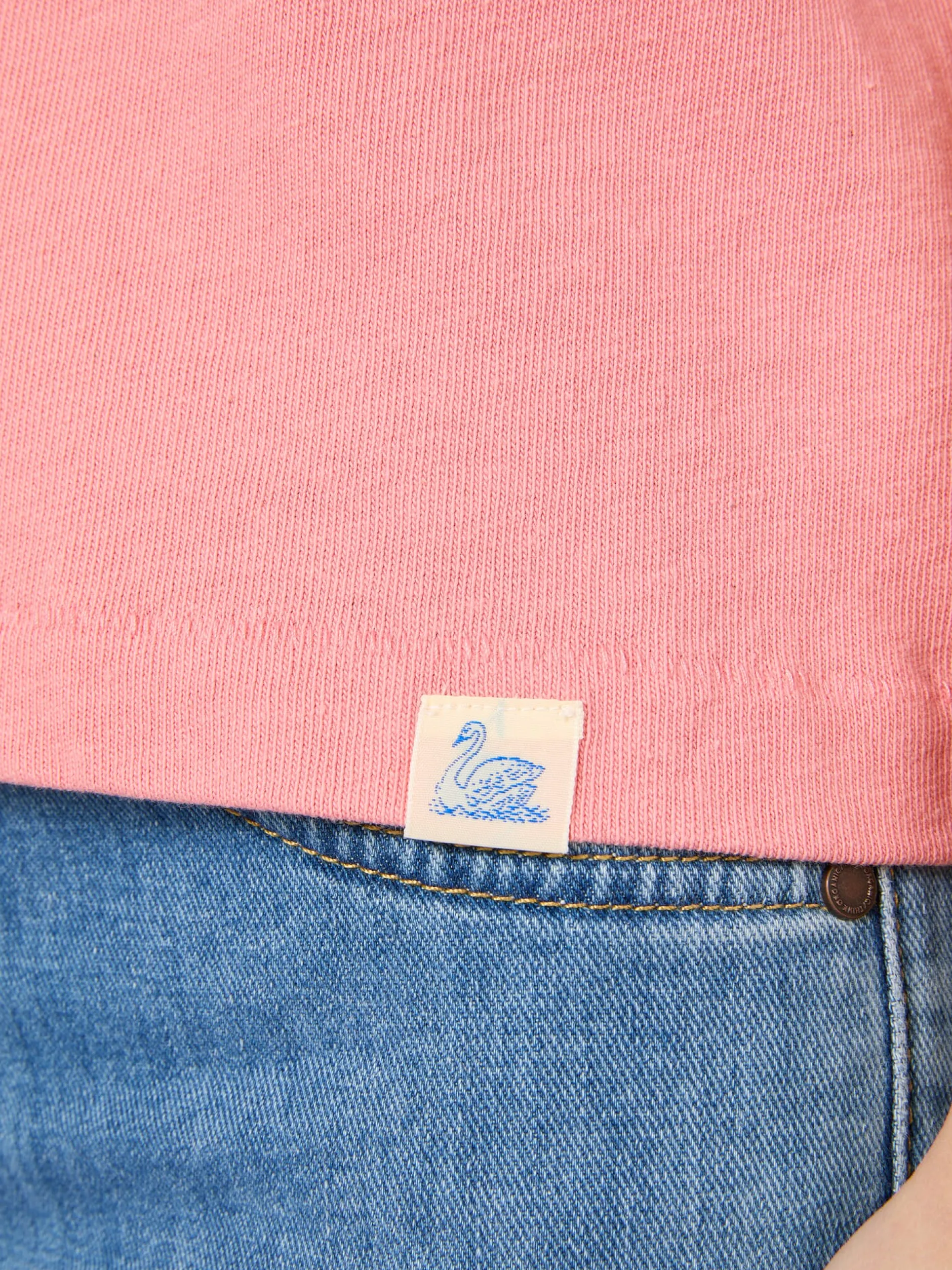 Seit 1911 hatte es die Trikotagenfabrik Merz b. Schwanen auf der Schwäbischen Alb, die einst eine traditionelle Textilregion war, gegeben. In jüngerer Vergangenheit hat der Berliner Peter Plotnicki die Tradition der Firma wiederbelebt. Er lässt wieder Shirts, Sporthosen und Wirkwaren fertigen – in Portugal und teils auch immer noch auf der Alb. Die Maschinen dort sind Original-Rundwirkmaschinen aus den Jahren 1920 bis 1960. Sie laufen sehr langsam und ermöglichen so erst die hohe Dichte, die charakteristische Struktur, den kernigen Griff sowie die Formtreue der Produkte. Ein kleines, aber bemerkenswertes Detail: Die Etiketten mit dem Originalschriftzug der Firma Merz b. Schwanen entstehen auf einem alten Jacquard-Bandwebstuhl.