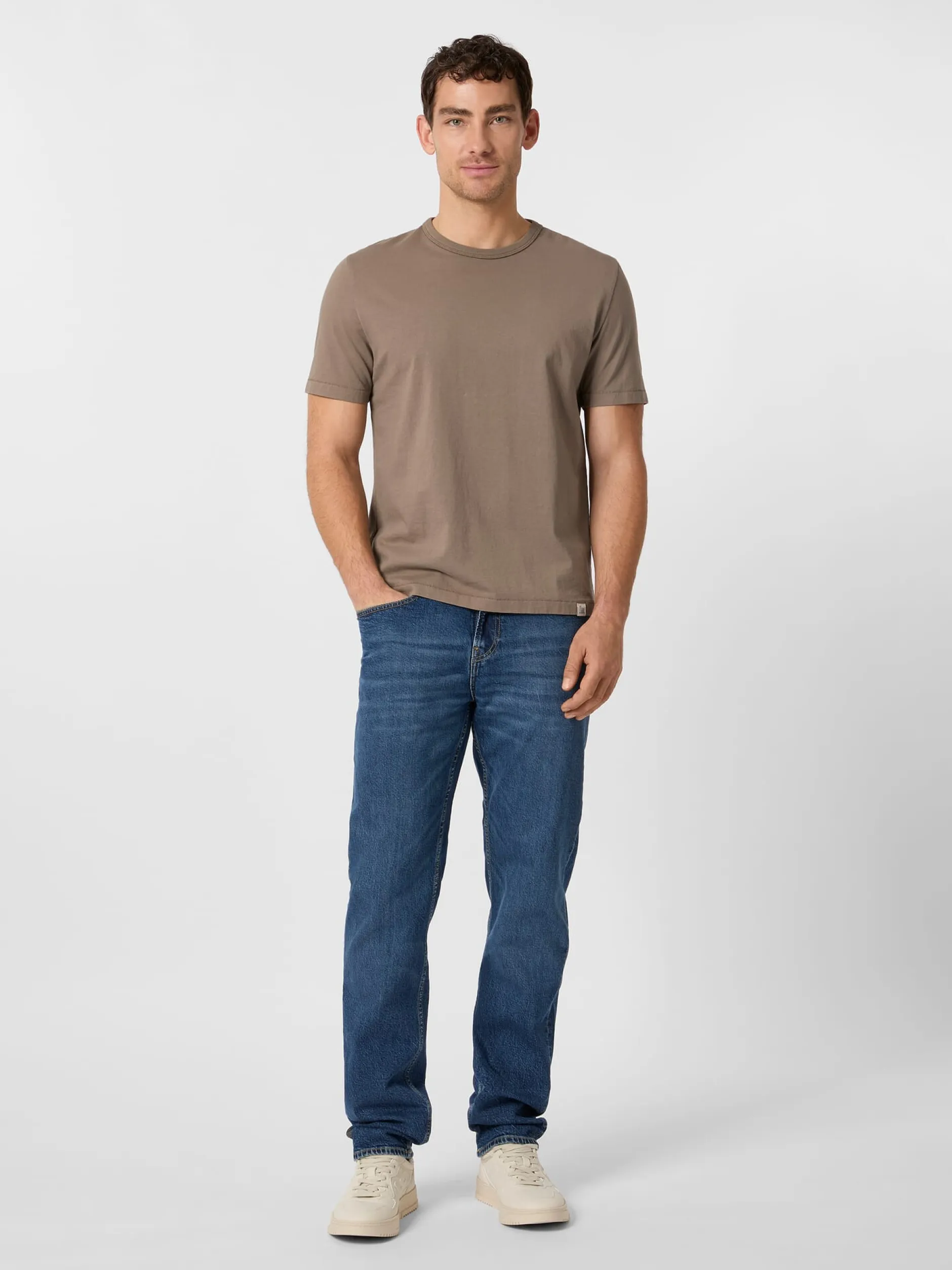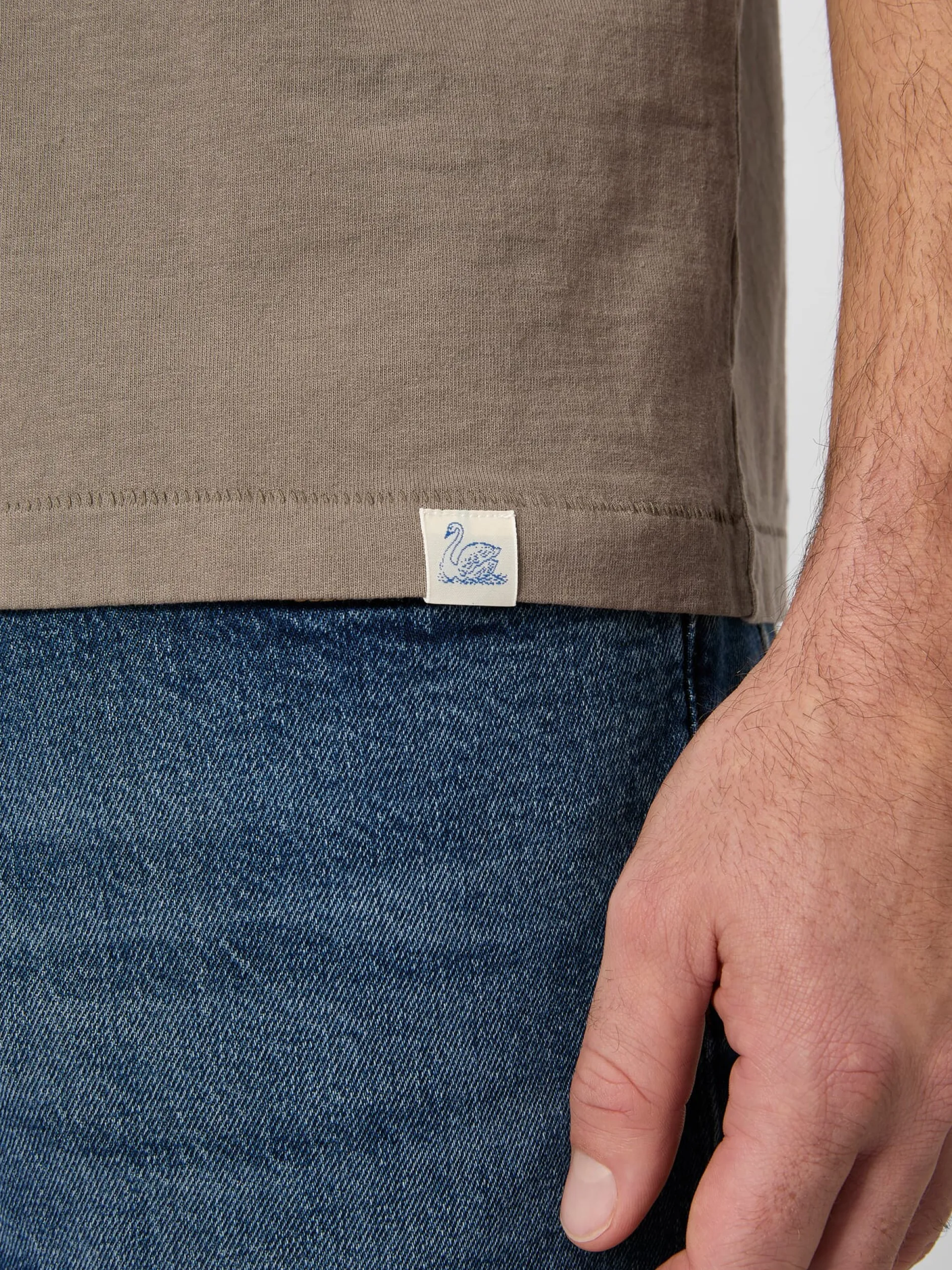 Das T-Shirt, ursprünglich ein Unterhemd, avancierte in 1950er Jahren nicht zuletzt durch Leinwandgrößen wie Marlon Brando und James Dean zur Oberbekleidung und Ikone der Popkultur. Heute ist es aus dem Alltag nicht mehr wegzudenken. Merz b. Schwanen fertigt dieses T-Shirt aus einem etwas dickeren Jersey. Feiner Rippenstrick bildet den Abschluss am Hals. Die verwendete Baumwolle stammt aus kontrolliert biologischem Anbau.
