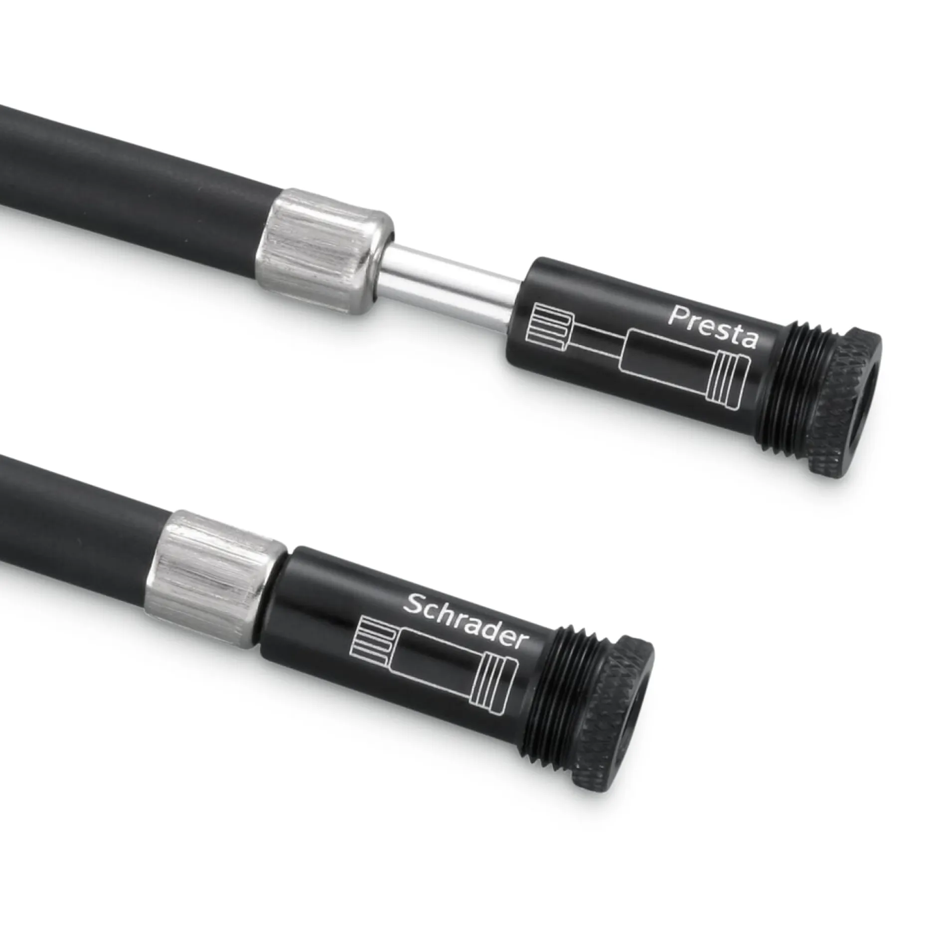 - Inklusive rausziehbarem Schlauch für Presta- und Schrader-Ventile