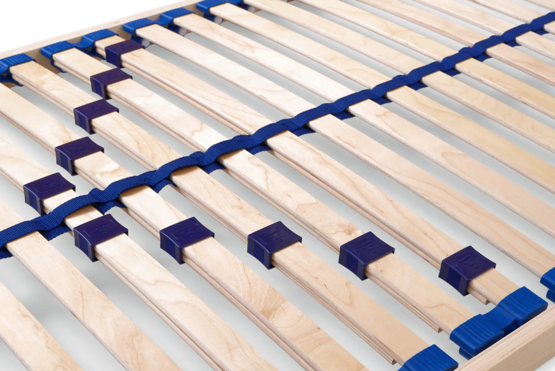 Robuster Rahmen aus Birkenschichtholz: Mit 28 flexiblen Federleisten und geringen Leistenabständen sorgt der LATTENROST RO für eine gleichmäßige Unterstützung des Körpers und ist für jeden Matratzentyp geeignet.