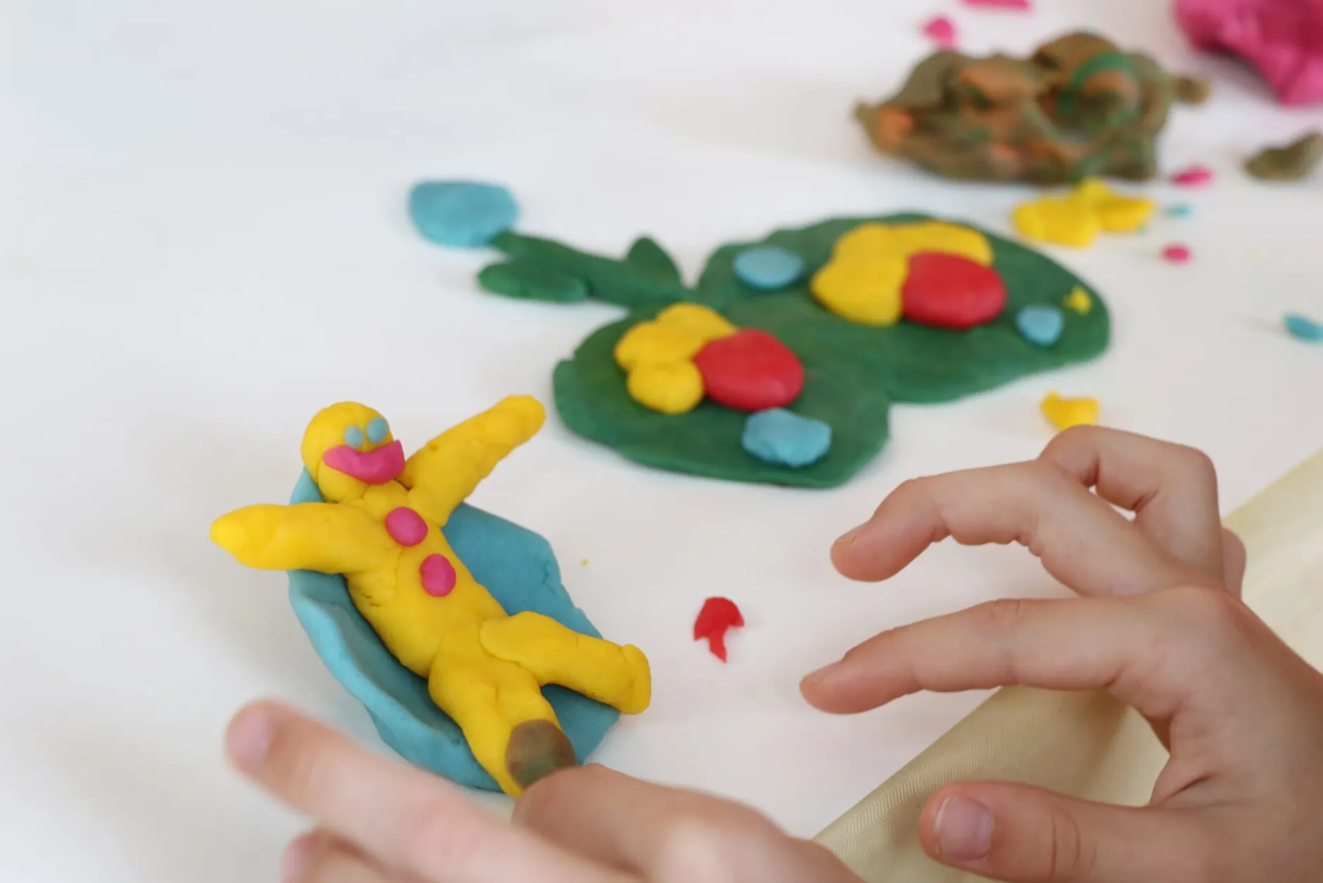 Diese farbenfrohe Knete ist angenehm weich, sodass sie sich auch von ungeübten, weniger kräftigen Kinderhänden bestens formen lässt. Sie ist jedoch nicht zu weich, sodass sie ihre Form beibehält – bis die Skulptur mit einem gezielten „Patsch“ wieder für neue Gestaltungen befreit wird.