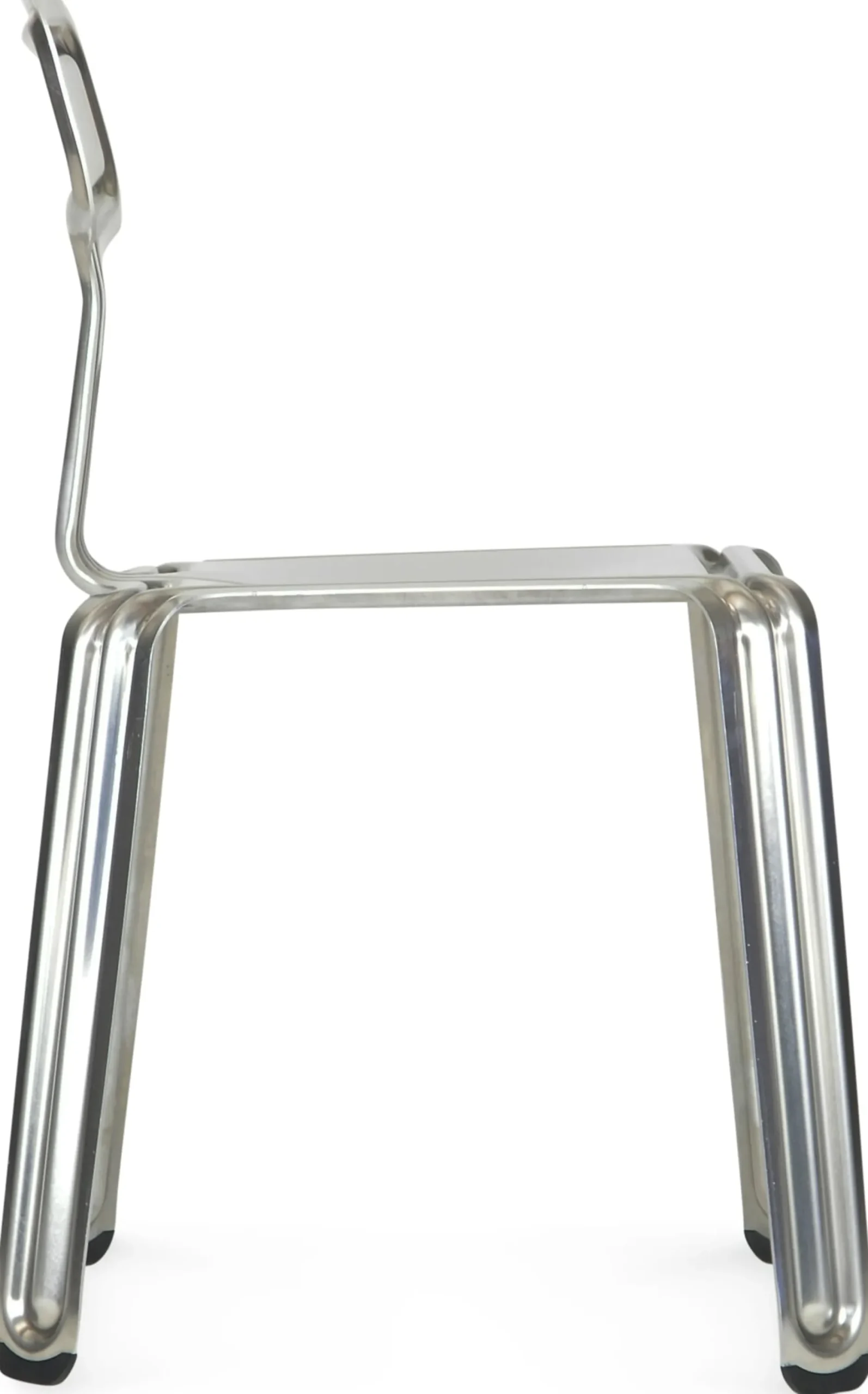 Material: Stuhl: Aluminium, unbehandelt bzw. glänzend pulverbeschichtet; Gleiter: Thermoplastisches Polyurethan (TPU)