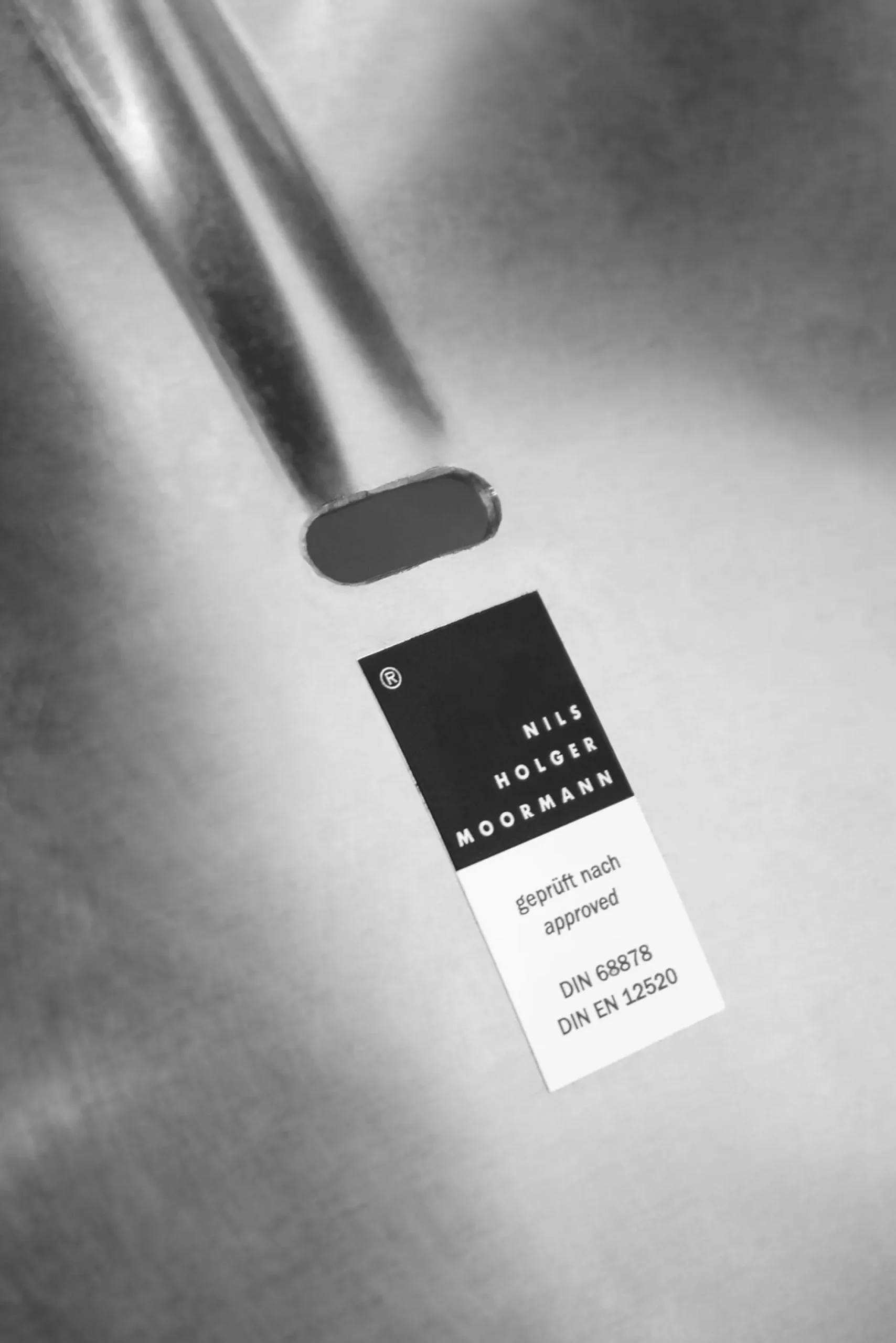Bei der Variante „Aluminium unbehandelt“ sind Bearbeitungsspuren sichtbar. Das Material weist eine leichte Unregelmäßigkeit auf, die sich im Laufe der Zeit verstärken kann. Ein sichtbarer Abrieb z. B. auf heller Kleidung ist möglich.