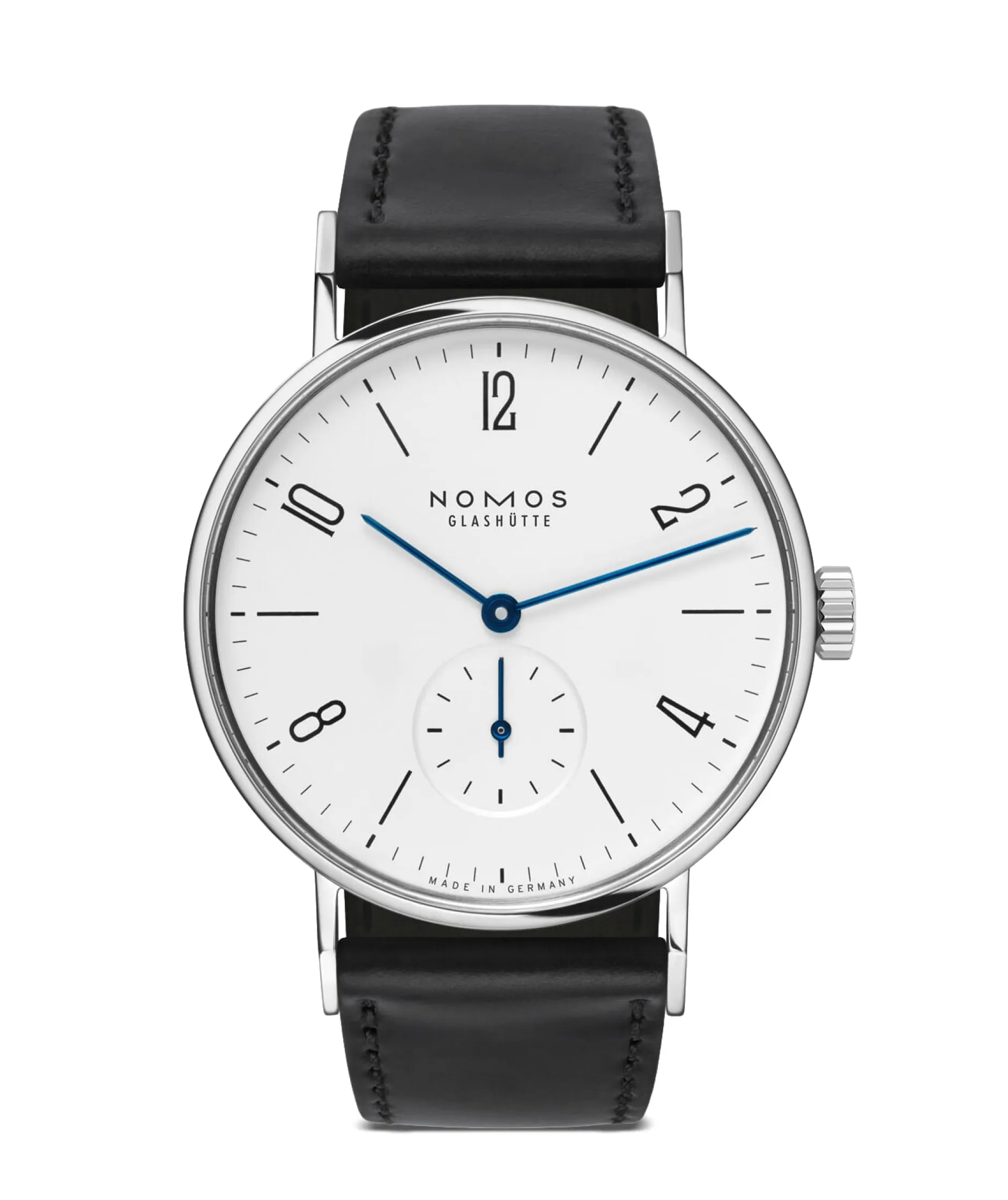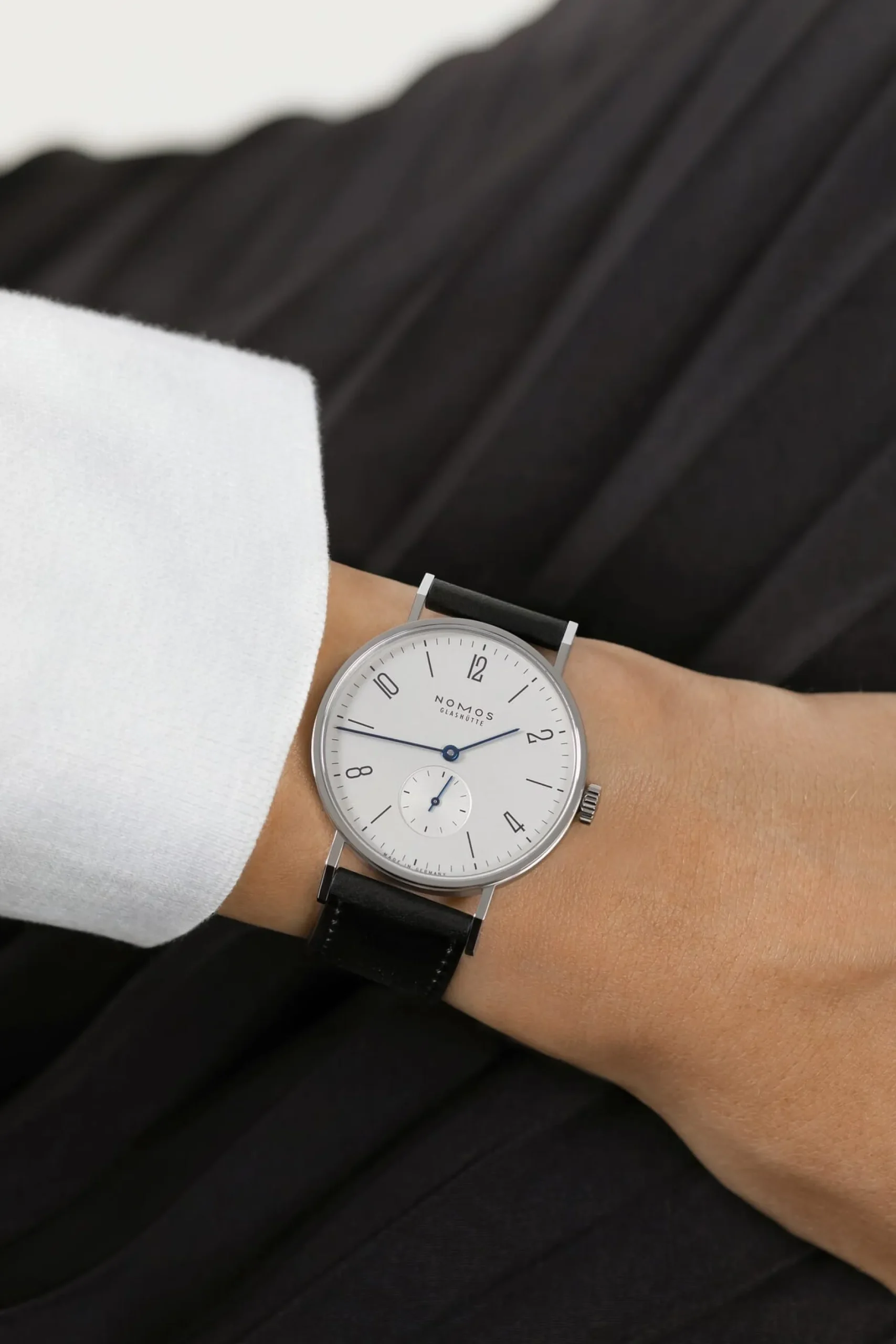 Als gestalterische Meisterleistung gilt die Tangente seit ihrem Erscheinen zu Beginn der 1990er Jahre. Vor Jahren, als wir die Uhr zum ersten Mal anboten, mochten wir uns nicht dazu hinreißen lassen, die seinerzeit noch relativ neue Tangente als Klassiker zu bezeichnen. Dies ist heute anders, wie auch die Vielzahl nachempfundener Uhren und vor allem die ellenlange Liste von Auszeichnungen beweisen. Die Gestaltung der Nomos Tangente lehnt sich an einen Entwurf aus den 1920er Jahren an, der seinerzeit keine Beachtung fand – Nomos Glashütte hat ihn perfektioniert und ins Heute übersetzt. Wir bieten die Tangente mit Saphirglasabdeckung und Stahlboden an.