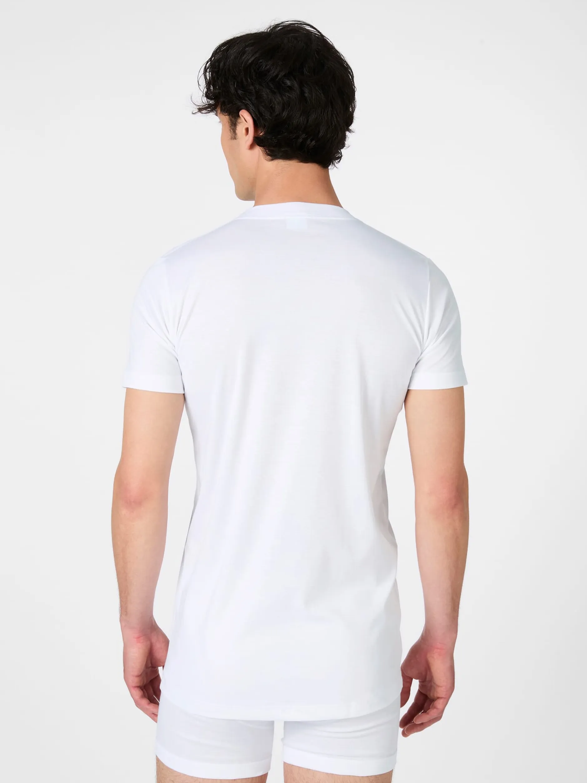 Dieses Shirt fertigt Novila aus langstapeliger Mako-Baumwolle. Genauer aus einem Feininterlock, einem Gewirk mit gleichmäßiger, glatter und weicher Oberfläche. Feininterlock hat zudem eine gute Dehnbarkeit, wodurch er sich gut an den Körper anpasst und auch nach mehreren Wäschen seine Form und Struktur behält. Das Shirt ist eher körpernah und mit verlängertem Rumpf geschnitten, zudem ist es mit flachen Nähten gearbeitet und das elastische Rundhalsbündchen liegt gut an. Damit ist es das ideale Unterziehshirt unter einem Business- oder Freizeithemd.