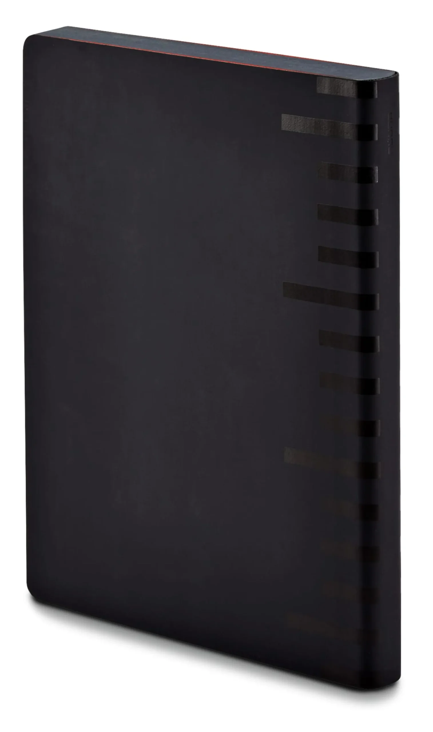 - Neonorangefarbenes Millimeterpapier im Einband aus Recyclingleder
