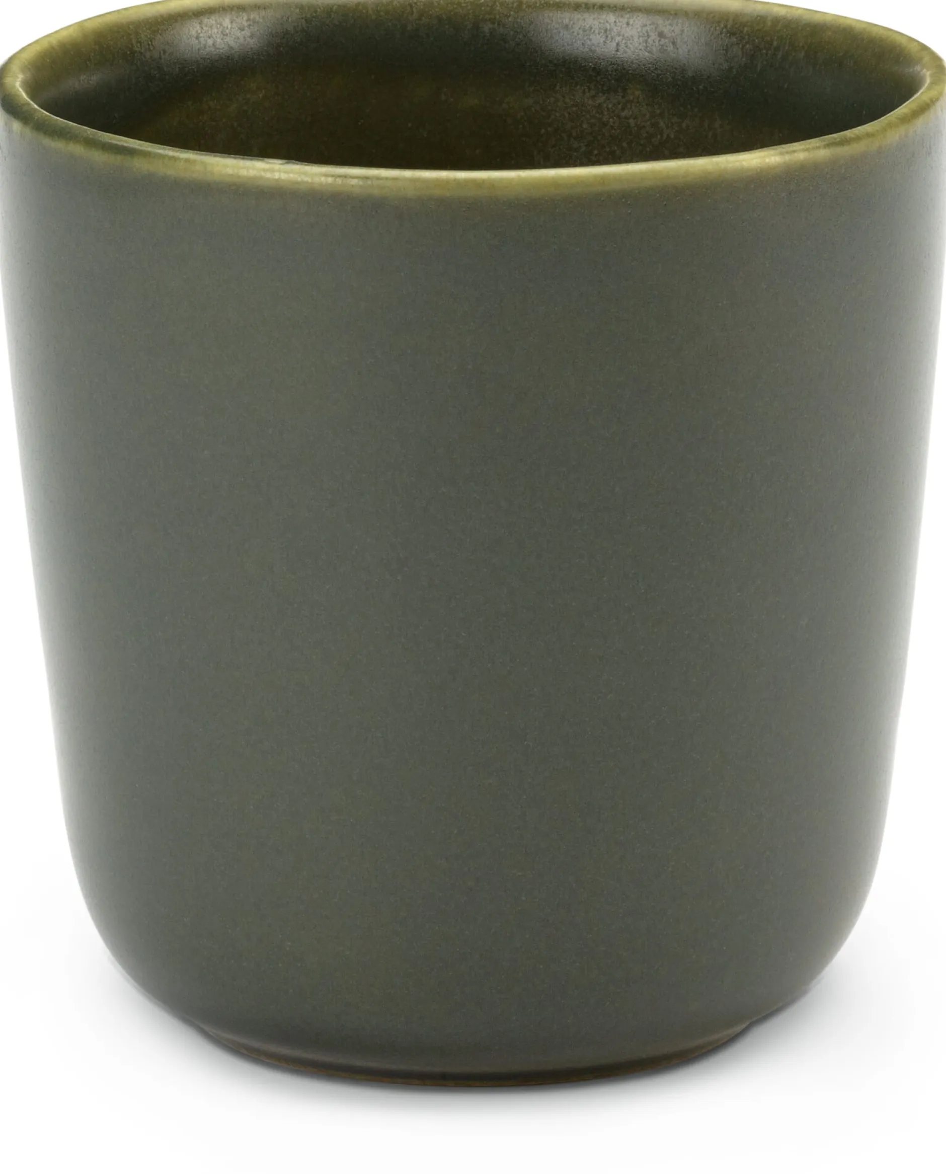 Bereits der helle Sandton der einen Glasur ist durch und durch ehrlich: Frei von zusätzlichen Pigmentzugaben, ergibt er sich aus der ursprünglichen Farbe des verwendeten Scherbens und ist charakteristisch für die Region im Norden Portugals, wo die Töpferei tätig ist. Die helle Glasur hebt den Charakter des Werkstoffes hervor und betont ihn nachdrücklich – auf seine ganz eigene Weise. Wir haben sie nur an den Innenseiten auftragen lassen. Dadurch wird außen die feinporige Struktur des Tons greifbar, und das im wahrsten Sinne des Wortes. Mit jedem Gebrauch, mit jeder Speise und jedem Getränk, das Sie mit diesem Geschirr servieren, werden Spuren sichtbar, verändert das Material sein Aussehen und entwickelt Patina. Im Vergleich dazu ebenmäßiger kommt der Farbton der anderen Glasur daher, die satt aufgetragen ein matt schimmerndes Dunkelgrün ergibt.