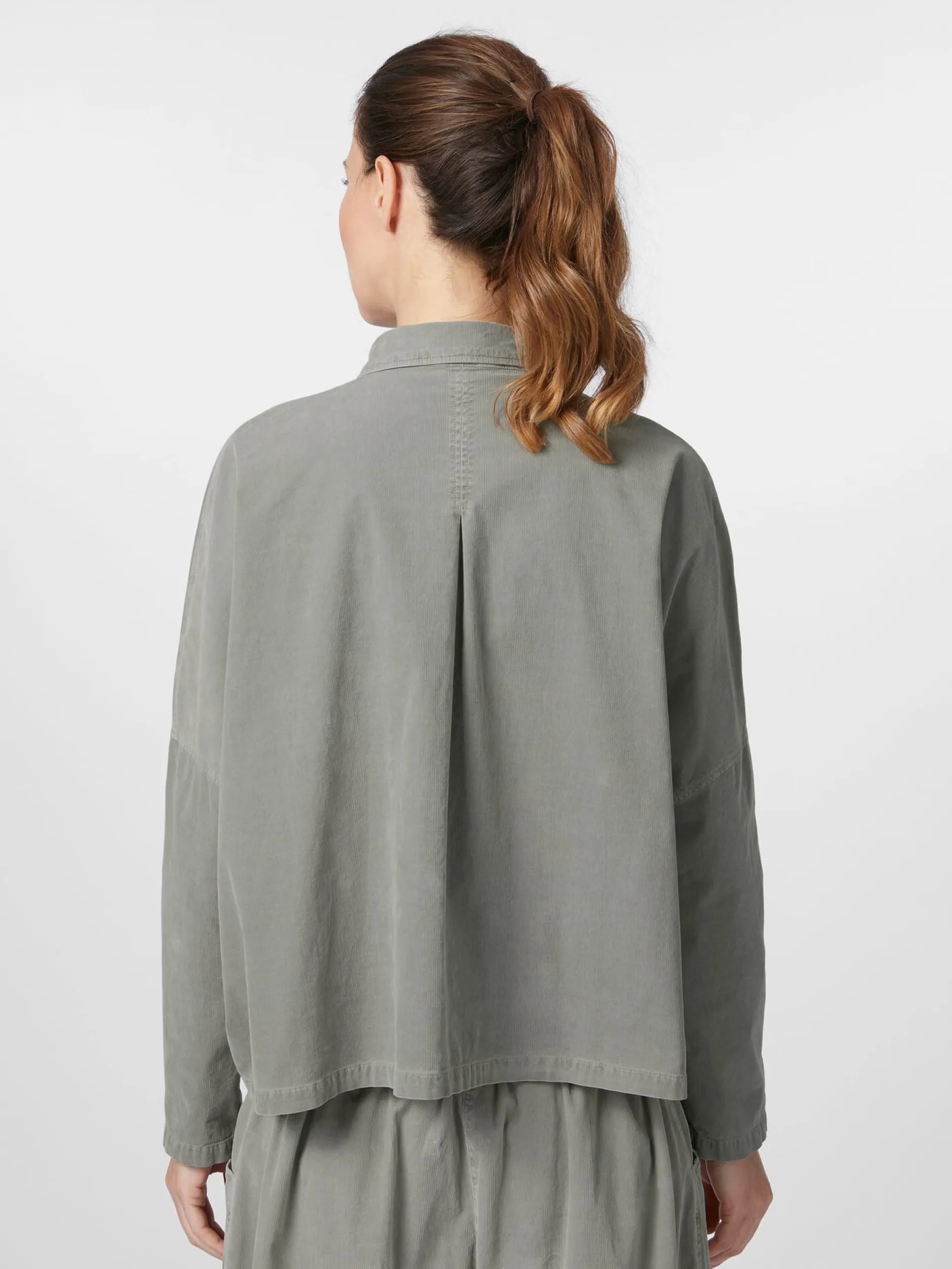 Cord mit seinen samtartigen Längsrippen hat eine markante Optik und Struktur. Oska konfektioniert diese Bluse aus einem Feincord, der aus hautsympathischer Baumwolle besteht, etwas Elastan sorgt für einen leichten Stretch-Effekt und erhöht so den Tragekomfort und die Formtreue. Die Form der Bluse ist kastig und Oska-typisch überschnitten, eine im Rücken aufspringende Kellerfalte macht sie noch bequemer.