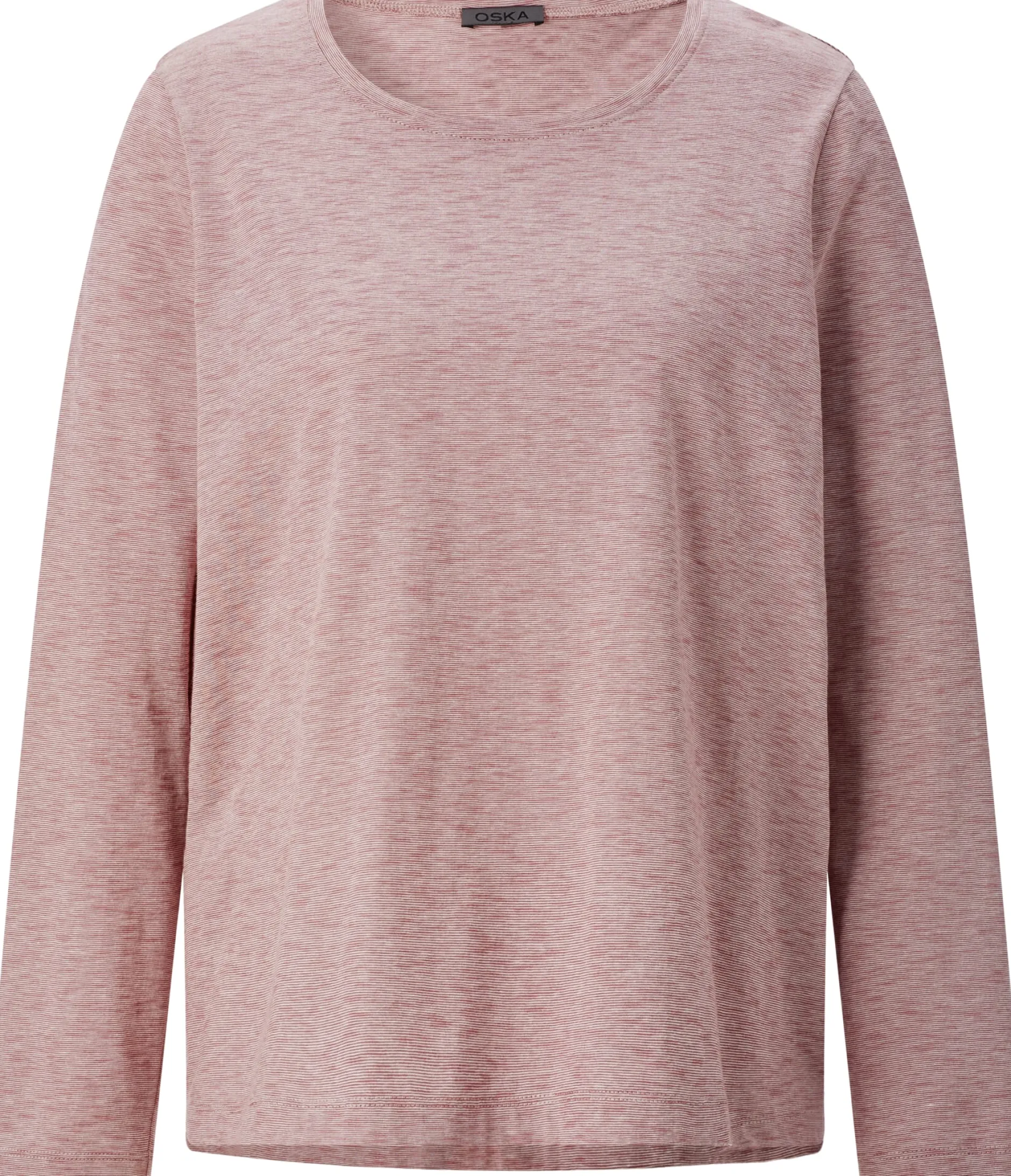 Dank der leicht ausgestellten, Oska-typisch überschnittenen Passform ist dieses Langarmshirt ausgesprochen bequem. Gearbeitet ist es mit geradem Saum und eher weitem Rundhalsausschnitt. Das verwendete Material trägt zusätzlich zum Tragekomfort bei. Gefertigt ist das Shirt aus reiner, hautsympathischer Baumwolle. Der Jersey liegt weich auf der Haut und umspielt sanft die Figur. Der Einsatz farblich unterschiedlicher Garne bewirkt eine lebendige Melangeoptik. Alles in allem ist das Shirt ein lässiges Lieblingsstück, dass die Garderobe vielseitig ergänzt.