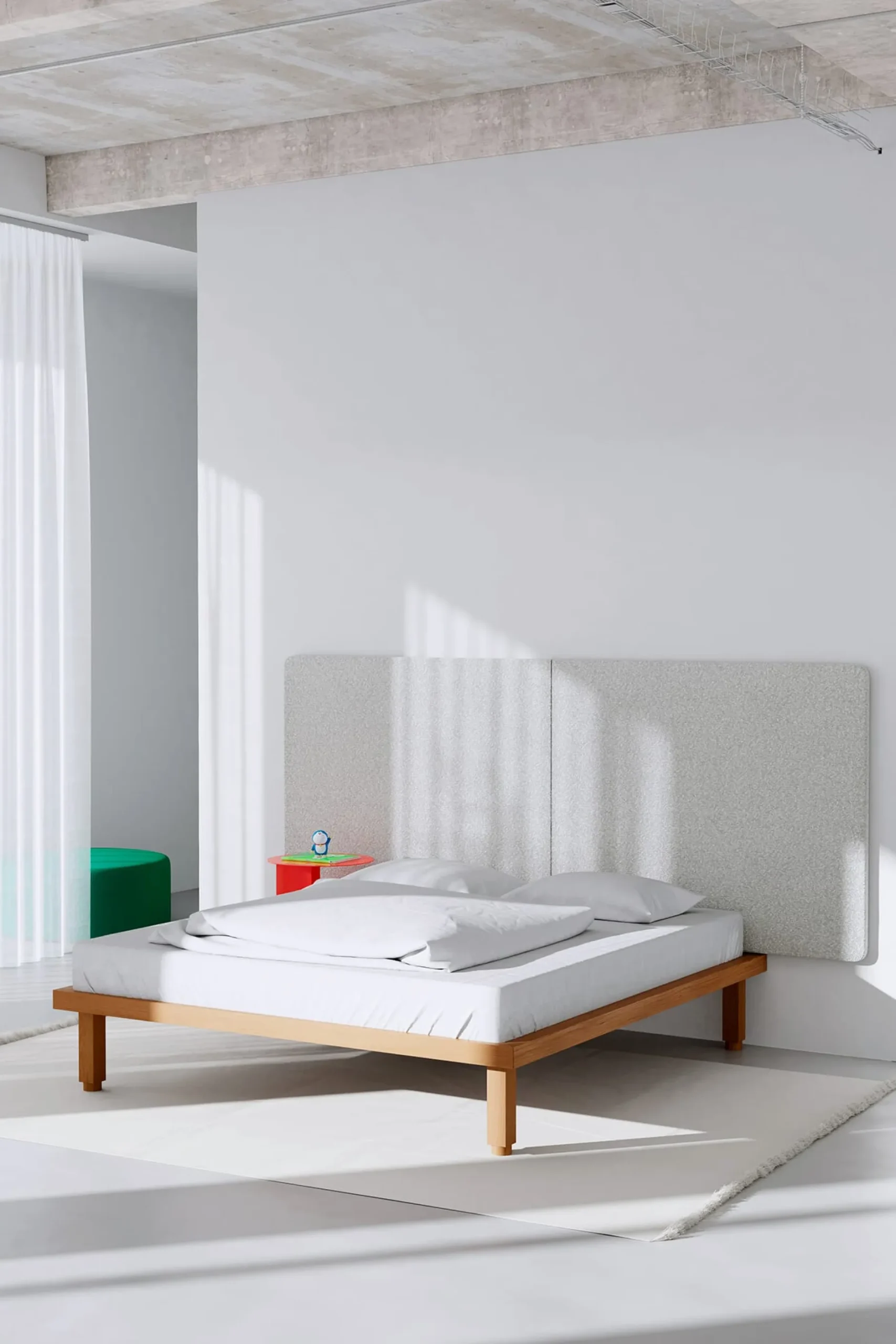 Das Bett KAYA ist der ideale Rückzugsort für innere Ruhe und ein zeitloses Statement für bewussten Konsum und langjährigen Gebrauch.
