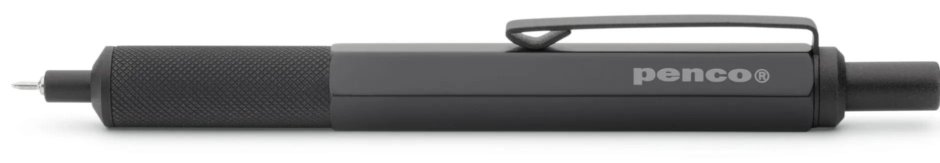 Präzise Mechanik und gutes Schreibgefühl aus Japan: Dieser an professionelle Zeichenstifte angelehnte Tintenroller im Taschenformat ist aus Alumium gefertigt und anschließend pulverbeschichtet – daher seine Leichtigkeit und seine widerstandsfähige Oberfläche. Der fein gerändelte Griffbereich sorgt für Halt beim Schreiben und Zeichnen, der Clip aus Federstahl beim Transport in der Tasche. Bei Betätigung des Drückers verschwindet die Feinmine im Inneren des Stifts – keine Tintenflecken in Hemden, Hosen und Taschen.