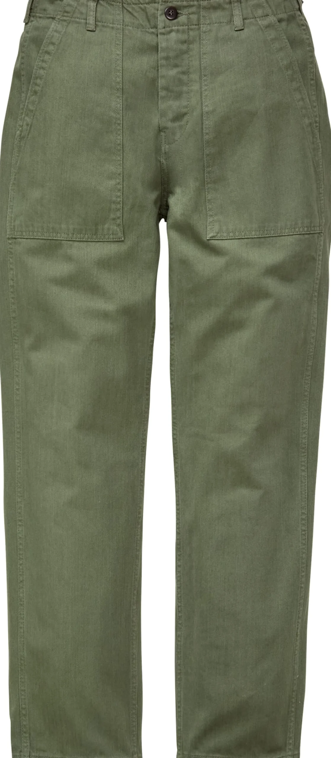 Diese aufgrund ihrer Robustheit und bequemen Passform beliebte Hose geht auf ein Modell zurück, das zwischen 1952 und 1963 zur regulären Felduniform der amerikanischen Streitkräfte zählte – sie dürfte mithin auch von Elvis Presley getragen worden sein. Pike Brothers hat bei der Neuauflage die Form, den Schnitt und das kräftige Fischgratgewebe unverändert gelassen. Lediglich die ursprünglichen Metallknöpfe wurden durch Steinnussknöpfe ersetzt. Die Hose hat je zwei aufgesetzte Taschen vorne und hinten, letztere sind knöpfbar. Die Weite lässt sich über einen geknöpften Taillenriegel im Bund moderat einstellen.