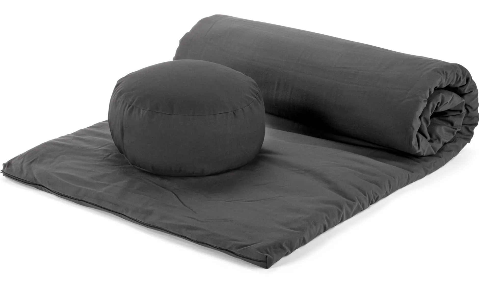 Diese Yoga- und Gymnastikmatte gibt auch ein passables Notbett ab. Ihre Füllung besteht aus einem 4 cm hohen Nadelvlies. Beim Vernadeln wird das Vlies noch mechanisch verfestigt und dadurch sehr dicht, reißfest und dennoch biegsam. Und da es außerdem punktversteppt ist, behält es auch langfristig seine Form. Der Außenbezug ist als kräftiges, strapazierbares Halbpanama-Gewebe gefertigt und bis 40 °C waschbar. Die Baumwolle für Bezug, Füllung und Inlett stammt aus kontrolliert biologischem Anbau.