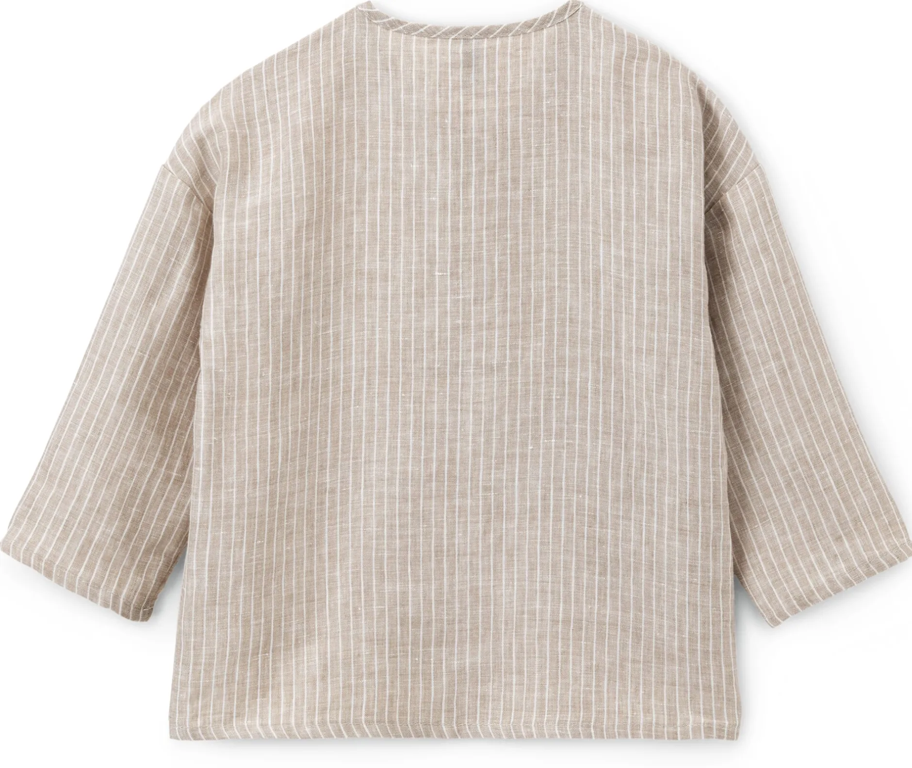 Schönes Wetter lockt nach draußen und nichts wollen Kinder dann mehr, als sich nach Herzenslust bewegen. Bekleidung aus leichten Stoffen und atmungsaktiven natürlichen Materialien hilft, der Überhitzung vorzubeugen, Schnitte, die maximale Bewegungsfreiheit bieten, sind nun das A und O. Bei diesem Leinen-Shirt sorgen eine leicht ausgestellte Schnittführung und der gerade Ärmelansatz für die lockere Passform, zugleich schützen die langen Ärmel die empfindliche Kinderhaut an den Armen vor direkter Sonneneinstrahlung (und kleine Forscher*innen bei Ausflügen in den Großstadtdschungel oder ins ländliche Unterholz vor den Stichen zudringlicher Mücken oder vor unliebsamen Kratzern durch Dornen und Äste). Zum bequemen An- und Ausziehen ist der Rundhalsausschnitt des Shirts mit tiefem Schlitz und zwei Holzknöpfen gearbeitet. Das atmungsaktive Leinengewebe, das selbst an heißen Sommertagen leicht kühlend auf der Kinderhaut aufliegt, zeigt neben einem feinen Streifenmuster die typischen Fadenverdickungen, die eine lebendige Melange-Optik entstehen lassen.