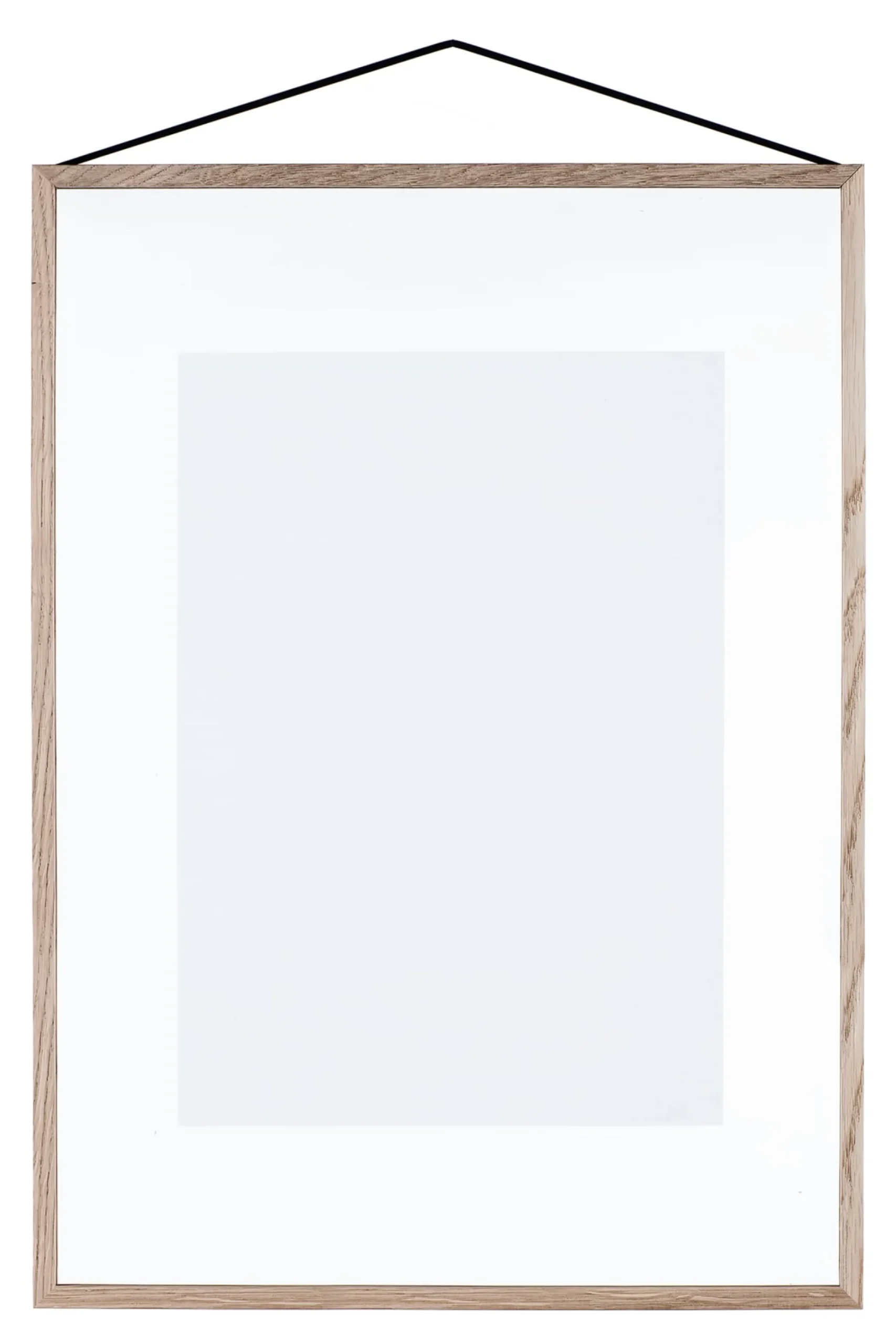 Ein Rahmen – mehr nicht. Reduziert auf die pure Form und bestehend aus zwei Acrylglasscheiben, vier Leisten aus unbehandeltem Eichenholz und einem Gummiband. Die hochwertig verarbeiteten Bauteile lassen sich einfach zusammenfügen und werden ausschließlich von dem robusten Gummiband gehalten, das zudem als Aufhängevorrichtung dient. Die in vier Größen lieferbaren Rahmen lassen sich quer und hochkant als Objektträger oder auch konventionell als Bildrahmen einsetzen.