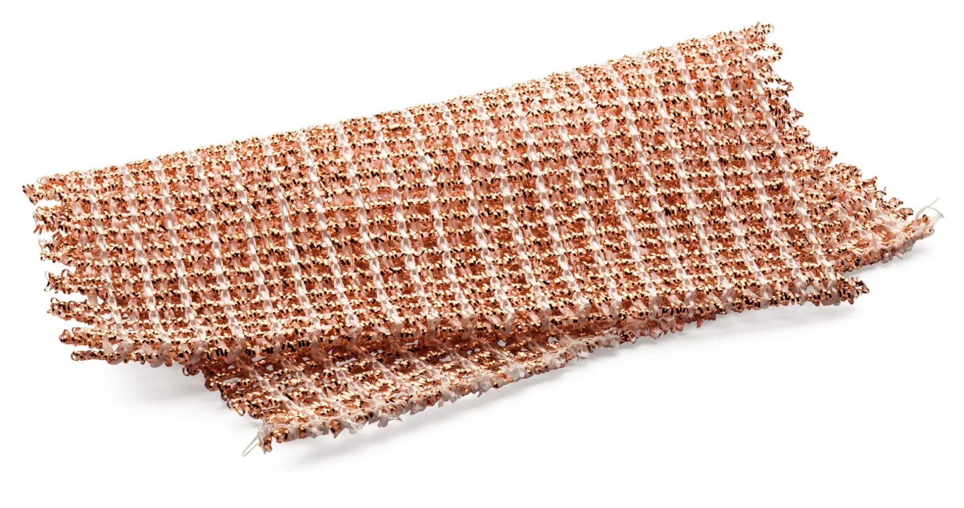 Feinstes Rohkupfer, das mit verzwirntem Polyamidfaden verwirkt ist. Mit den Tüchern lassen sich Töpfe und Pfannen, Glasobjekte und Glaskeramik-Kochfelder kratzfrei und oberflächenschonend reinigen.