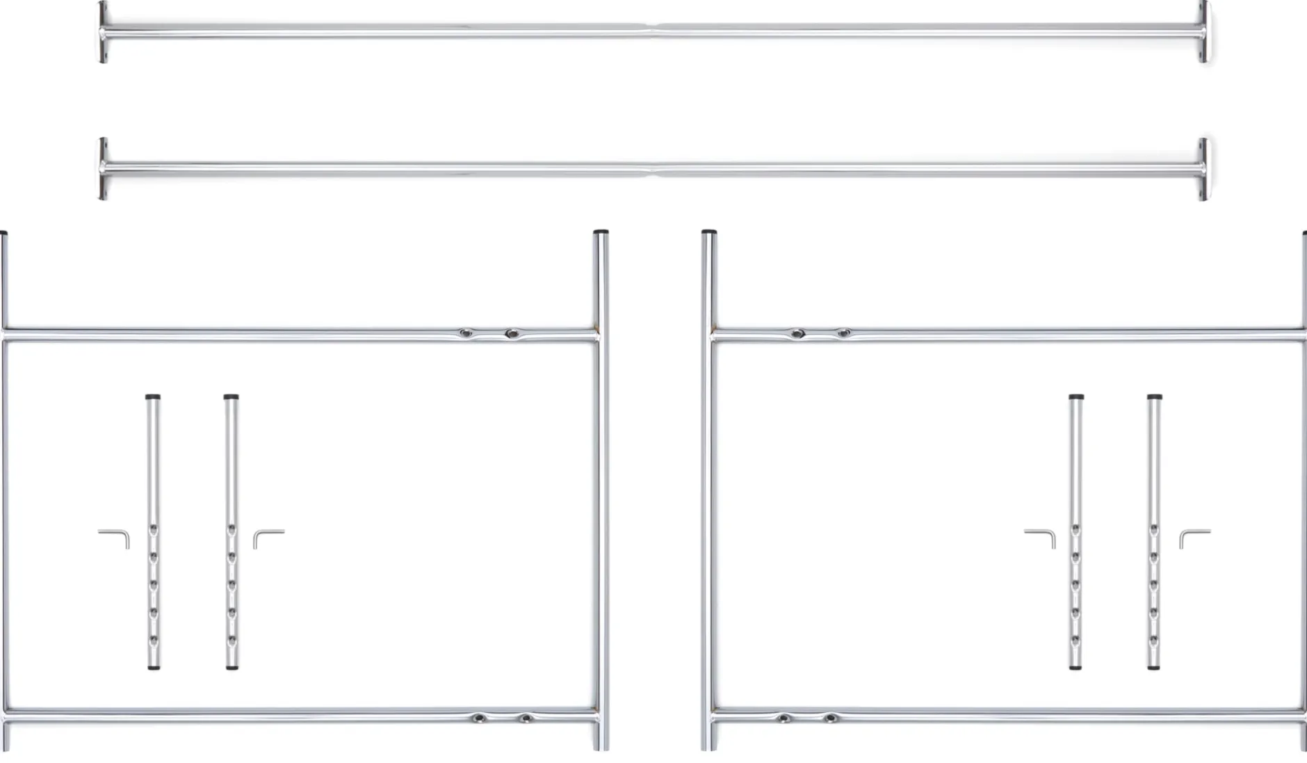 Das Gestell bieten wir mit exzentrisch positioniertem Kreuz an, inklusive langer Verlängerungsstäbe und Gummistopfen.