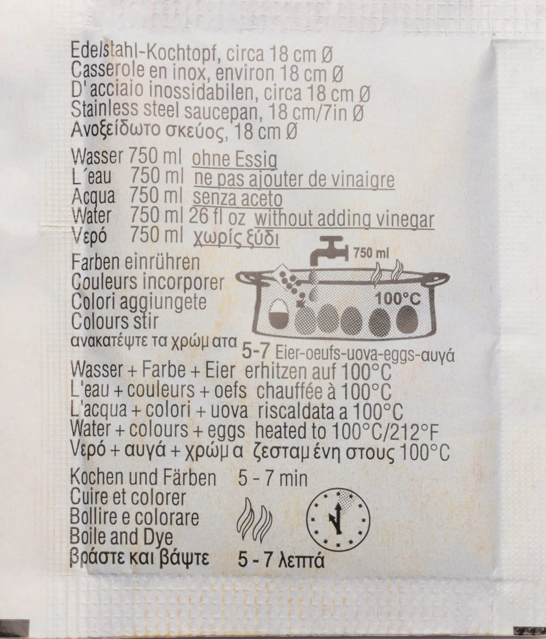- Denkbar einfache Anwendung: Farben ins Kochwasser rühren