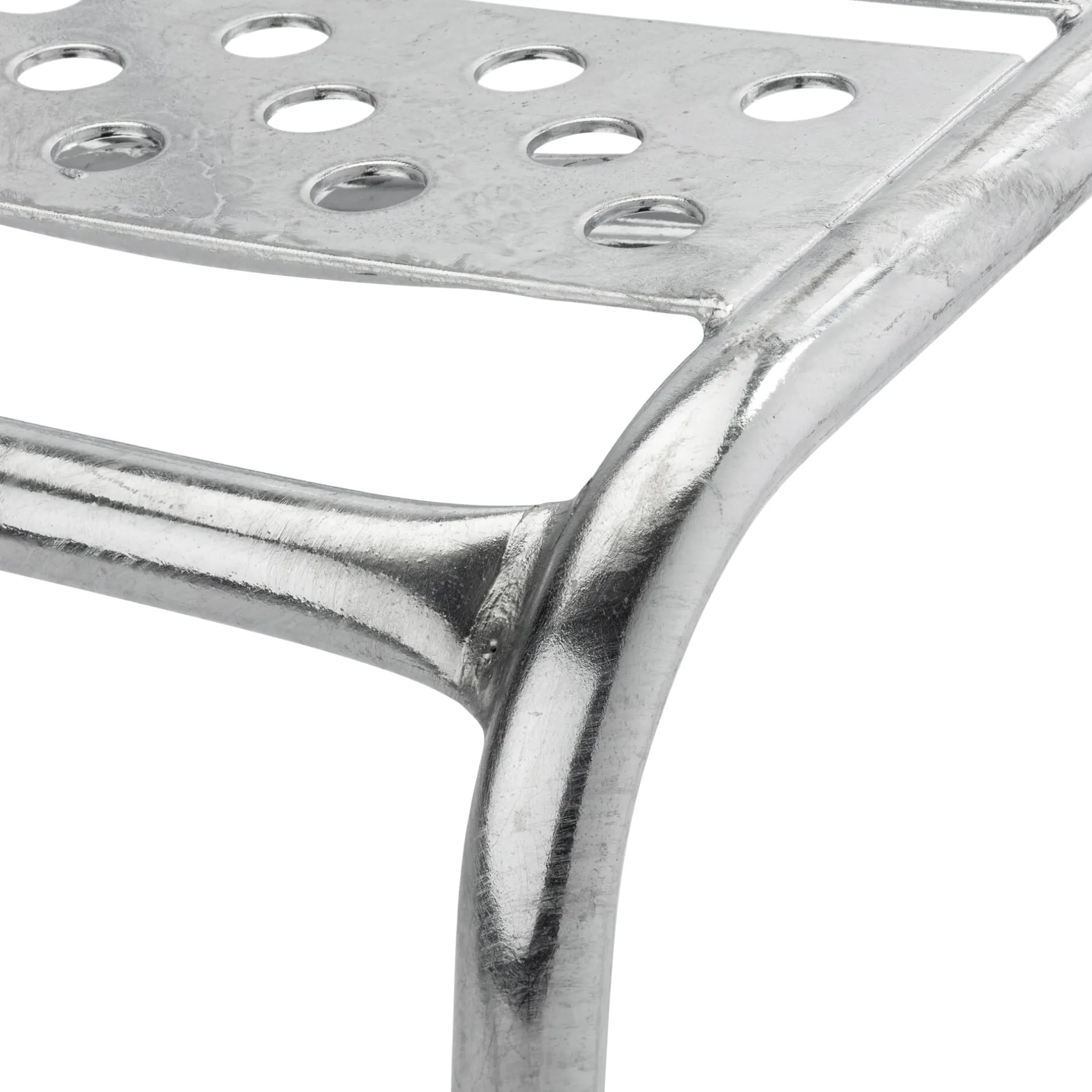 Armlehnstuhl WALLIS – besitzt alles, was wir von einem guten Außenmöbel erwarten. Markant präsentiert sich der zierliche und leicht handhabbare Stuhl mit seinen symmetrisch gelochten Flächen. Die Metallteile sind dauerhaft wetterbeständig behandelt, feuerverzinkt oder galvanisch verzinkt und pulverbeschichtet. Die Lochung der Sitz- und Rückenfläche sorgt nicht nur für eine unverwechselbare Optik, sondern lässt Regenwasser schnell abfließen, belüftet an heißen Tagen und macht die stählerne Struktur leichter. Wir liefern WALLIS in 2 verschiedenen Oberflächen, der außerordentlich robusten feuerverzinkten Variante oder der markant roten Version. Stuhl und Armlehnstuhl lassen sich gut auch in ihren Materialversionen miteinander kombinieren und liefern auf Balkon und auf Terrassen guten Sitzkomfort und eine interessante Optik.
