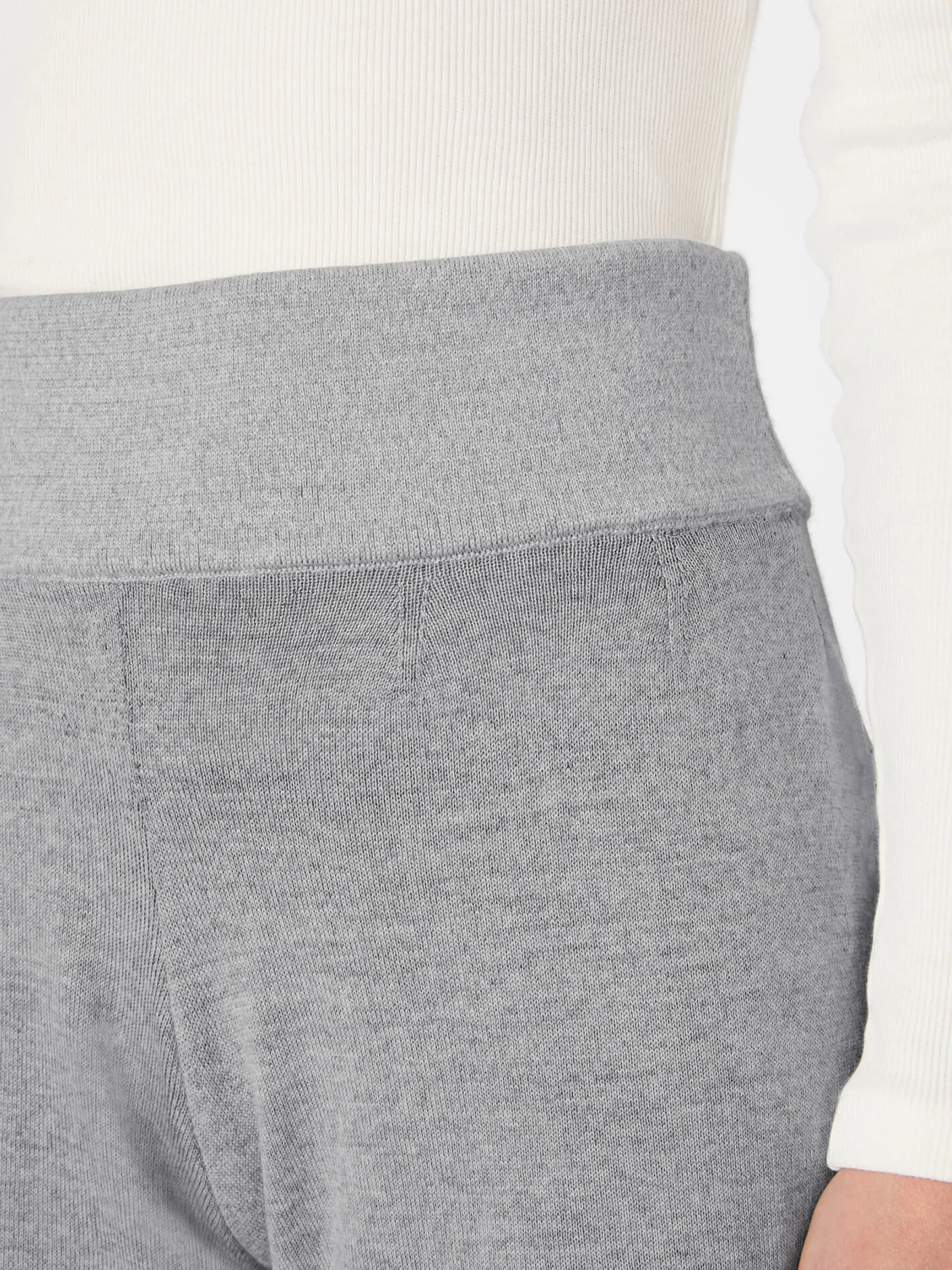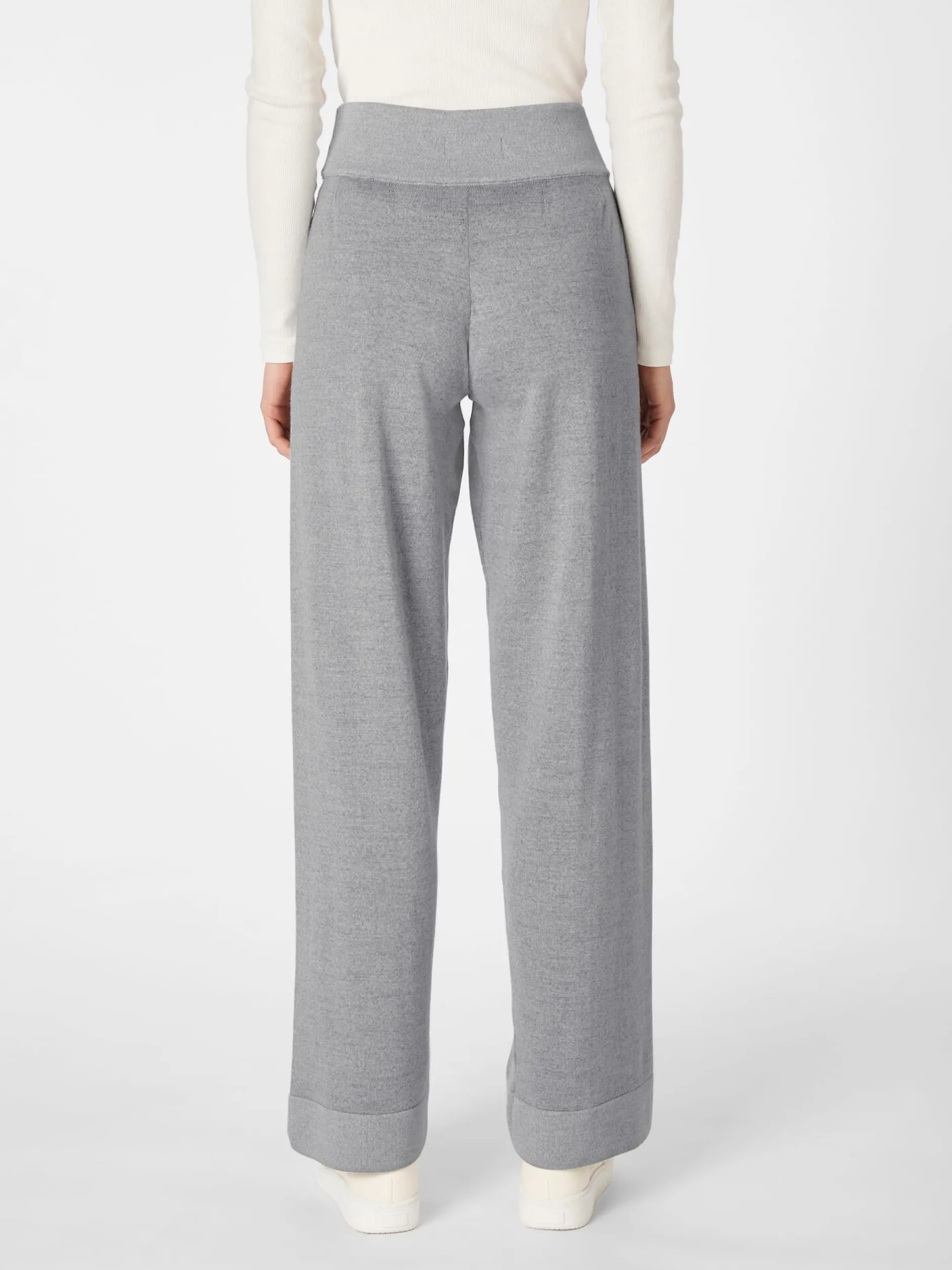 Herrlich bequem und wunderbar wärmend ist diese lässige Strickhose – ein Meisterstück aus dem Hause Seldom, das in Plattiertechnik gestrickt ist. Bei dieser Strickart wird mit zwei verschiedenfarbigen Garnsystemen gearbeitet, deren eine Farbe auf der rechten und die andere auf der linken Seite dominiert. Die jeweils zweite Farbe wird dabei nie völlig abgedeckt, wodurch auf beiden Seiten ein schöner Melangeton entsteht. Das feine, weich fallende Gestrick besteht zum Gutteil aus wärmender, ungemein schmiegsamer Merinowolle. Innen jedoch, wo es direkten Hautkontakt hat, ist es aus angenehm glatter und hautsympathischer Baumwolle aus kontrolliert biologischem Anbau gearbeitet. Die Passform ist leger gehalten, mit elastischem Bund und weitem, geradem Bein.