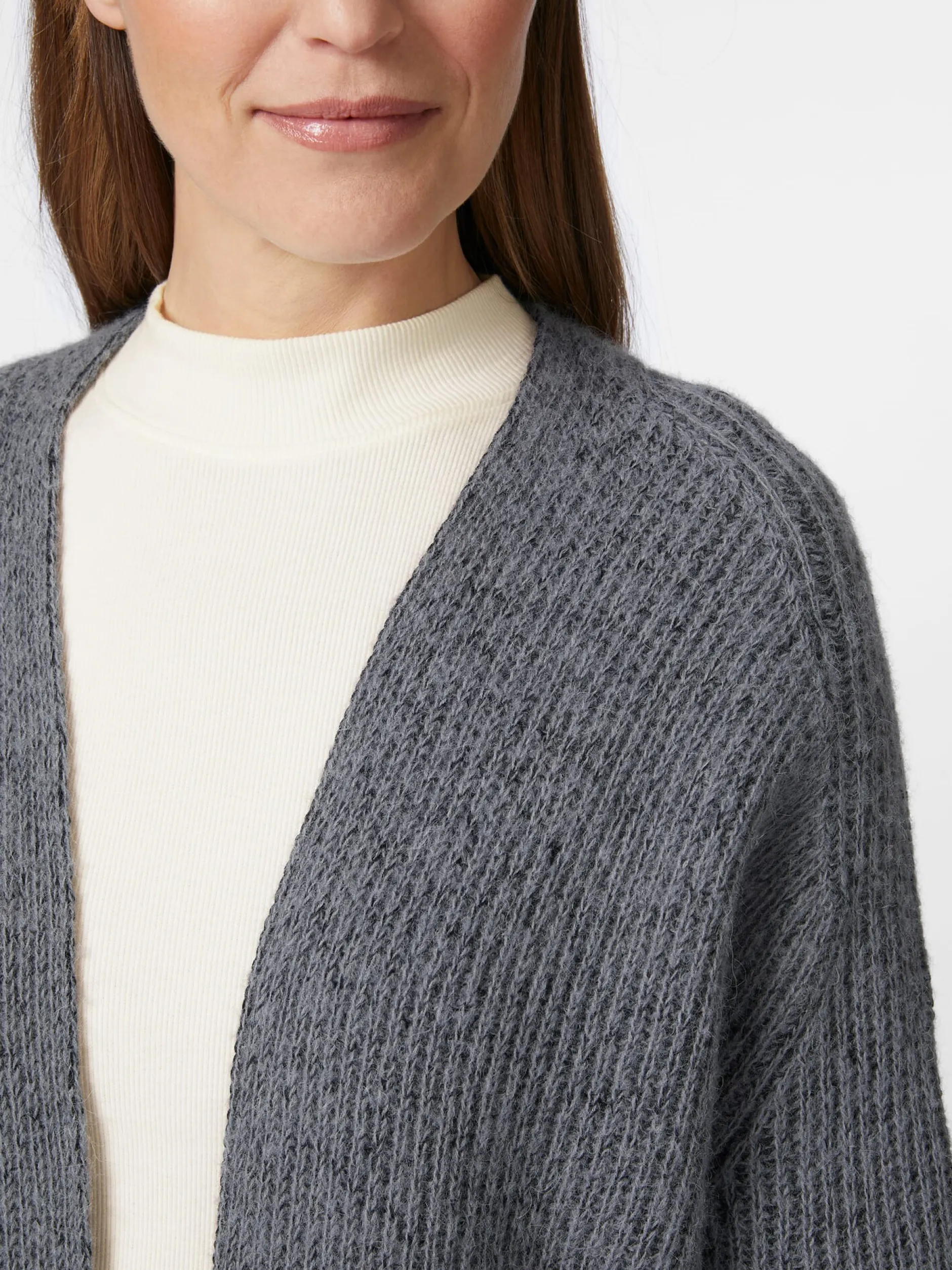 Der Mix aus hochwertigen, rein natürlichen Materialien ist es, der dieser Strickjacke einen Hauch von Luxus verleiht. Dank der Kombination von Schurwolle, kontrolliert biologisch angebauter Baumwolle und Babyalpaka ist sie wunderbar weich, wärmend und temperaturausgleichend. Und da sie im Patentstrick gefertigt ist, ist sie zudem besonders leicht und luftdurchlässig. Gearbeitet ist die verschlusslose Strickjacke mit überschnittenen Schultern und Rippenstrickbündchen an Ärmeln und Rumpf – eine überaus lässige und schmiegsame Begleiterin für alle Jahreszeiten, die sich ebenso gut zu Jeans und Chino, zu Rock und Sommerkleid tragen lässt.
