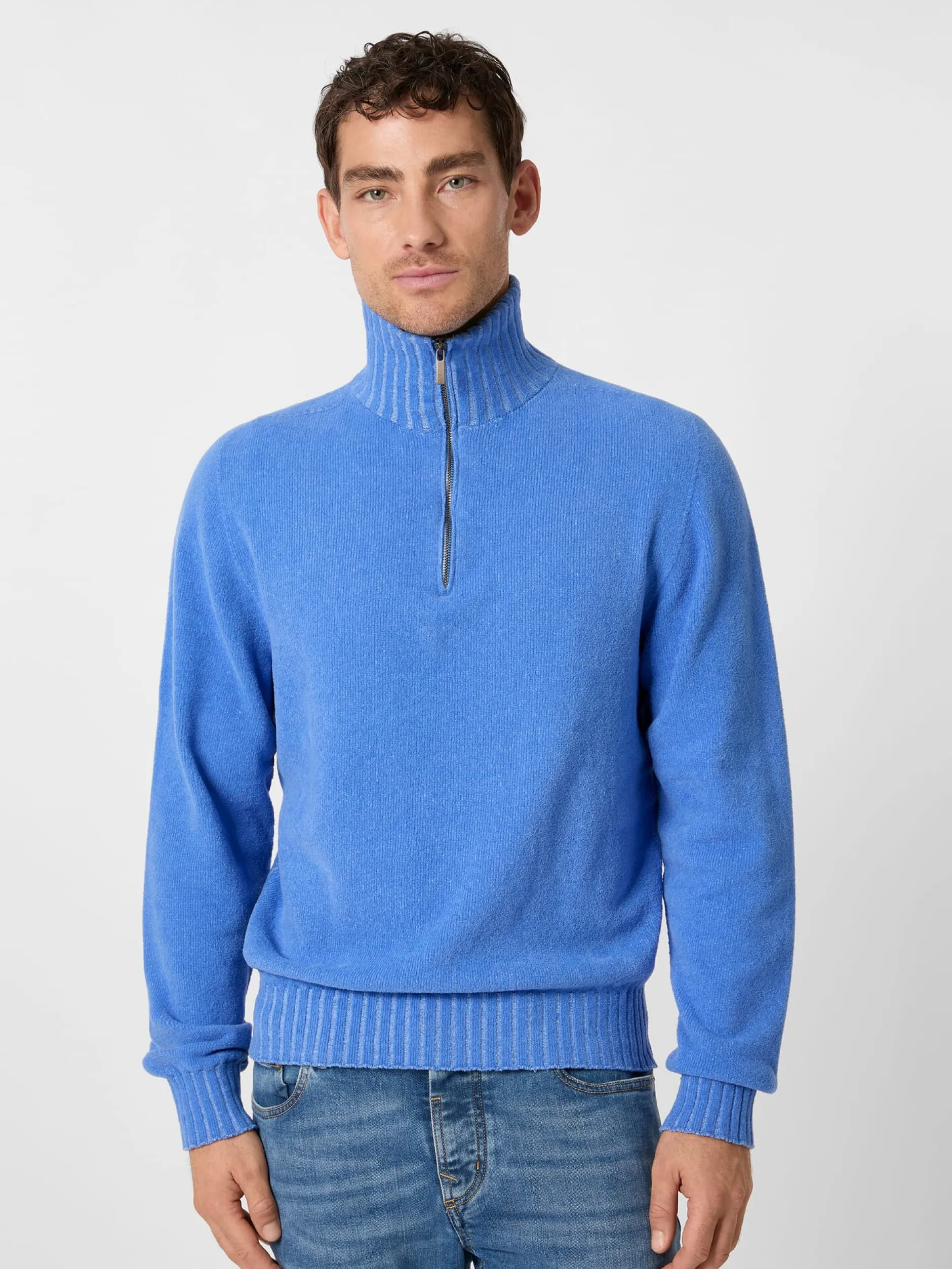 Der praktische Troyer mit seiner markanten Optik kommt ursprünglich aus der Seefahrt. Heute ist er ein zeitloser Modeklassiker, der in keinem Kleiderschrank fehlen darf. Dieses Modell von Seldom besteht weitgehend aus kontrolliert biologisch angebauter Baumwolle, hinzu kommt etwas Polyamid. Das weiche Gestrick mit frotteeartigem Griff ist in Plattiertechnik gefertigt. Dabei wird mit zwei verschiedenfarbigen Garnen gearbeitet, von denen eines auf der rechten und eines auf der linken Seite dominiert. Die jeweils zweite Farbe wird dabei nie völlig abgedeckt, wodurch ein Melangeton entsteht. Der Troyerkragen ist in breiter Rippenstricktechnik gearbeitet, breite Rippenstrickbündchen bilden den Abschluss an Ärmeln und Rumpf.