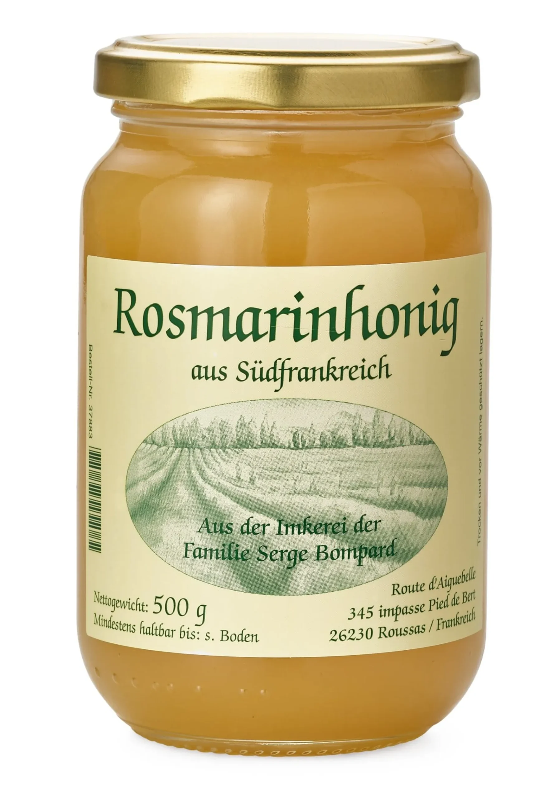Rosmarinhonig ist eine Spezialität der Mittelmeerregion, denn nur dort sind genügend große Rosmarinbestände vorhanden, um daraus eigenen Sortenhonig zu gewinnen. Im Geschmack ist der Rosmarinhonig duftig und leicht balsamisch, allerdings, wie immer bei Honig, nicht so intensiv wie das Kraut oder die Blüte selbst. Der Name Rosmarin bedeutet Meertau und deutet auf sein natürliches Vorkommen an den Küsten hin. Unser Rosmarinhonig kommt von der Familienimkerei Bompard in Südfrankreich.