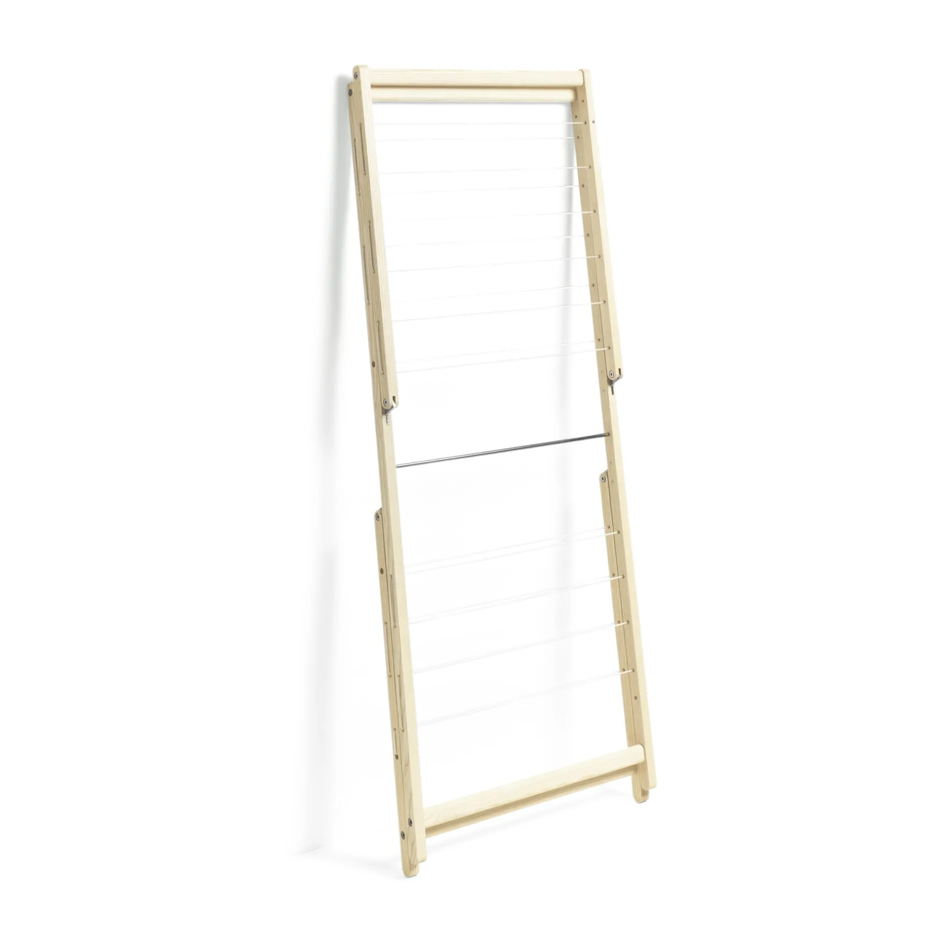 Hoch statt breit: So bleibt trotz trocknender Wäsche genügend Platz, egal ob im Bad oder im Wohnraum. Formschön und handwerklich mit Sinn fürs Detail gefertigt: der hochbauende Wäscheständer als Alternative zum größeren MAMA und einer Schnurlänge von immerhin 10,9 Metern. HAUSFREUND steht auch mal länger im Wohnraum, ohne zu nerven.