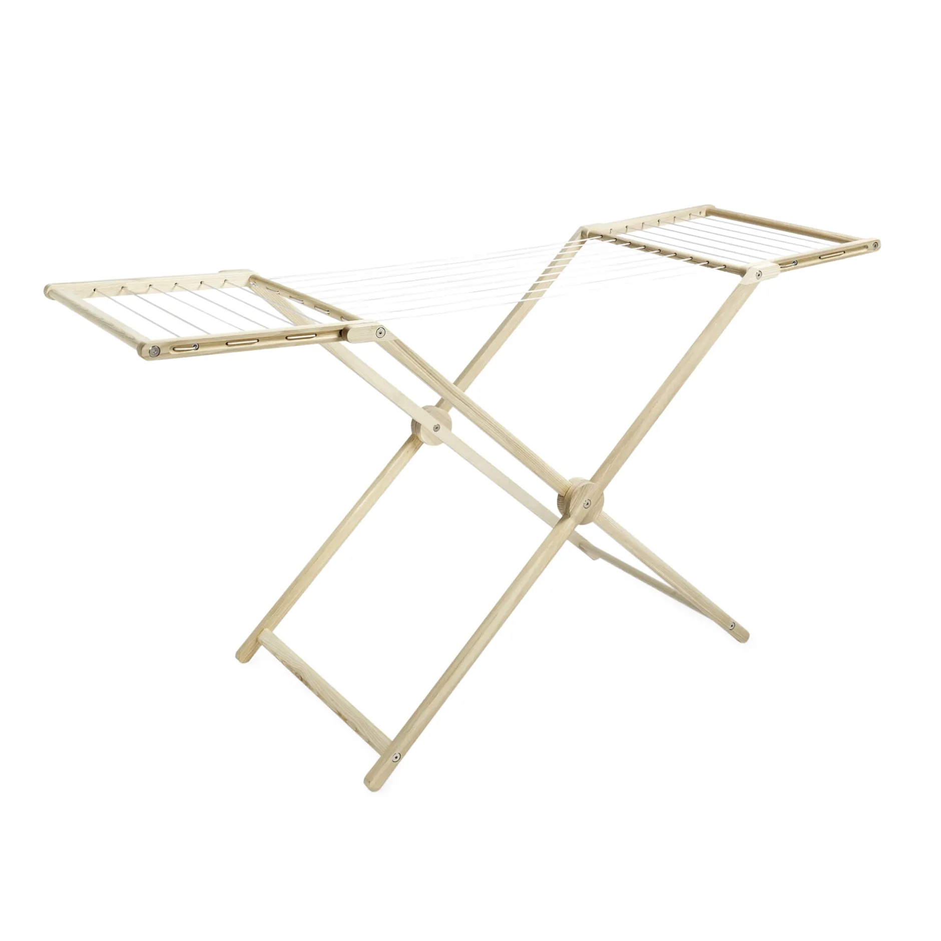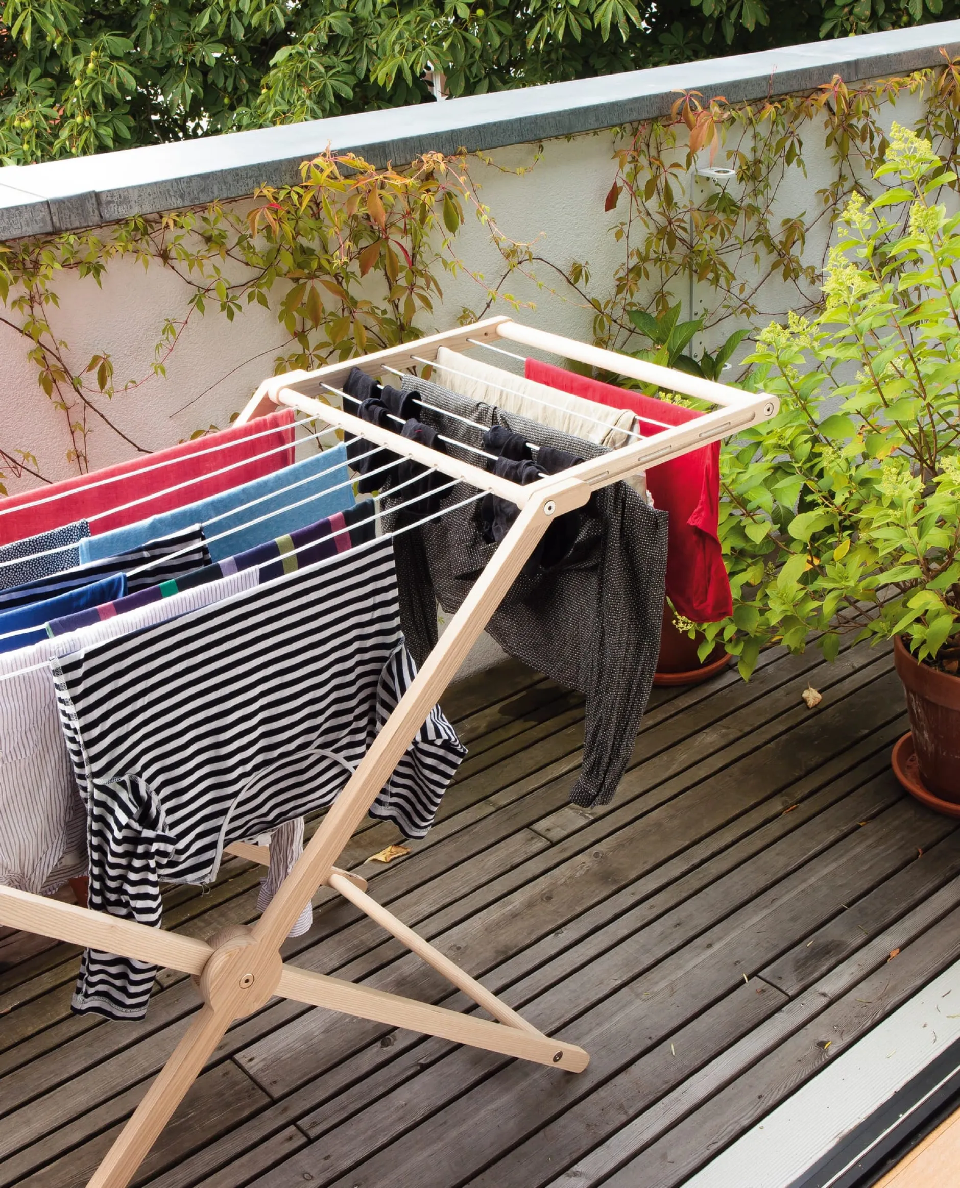 Formschön und handwerklich mit Sinn fürs Detail gefertigt: MAMA ist der große Wäscheständer für die Familie mit einer stattlichen Schnurlänge von 14,5 Metern. Der steht auch mal länger im Wohnraum, ohne zu nerven.