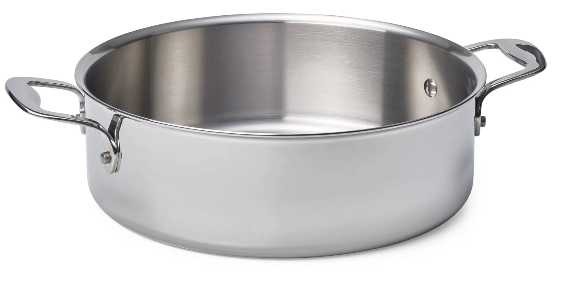 Weiter Brat- oder Schmortopf, in dieser Ausführung ofentauglich. Mit dem flachen Rand geeignet, um Flüssigkeiten schnell zu erhitzen oder um Fonds, Saucen und Mehlschwitze anzurühren.