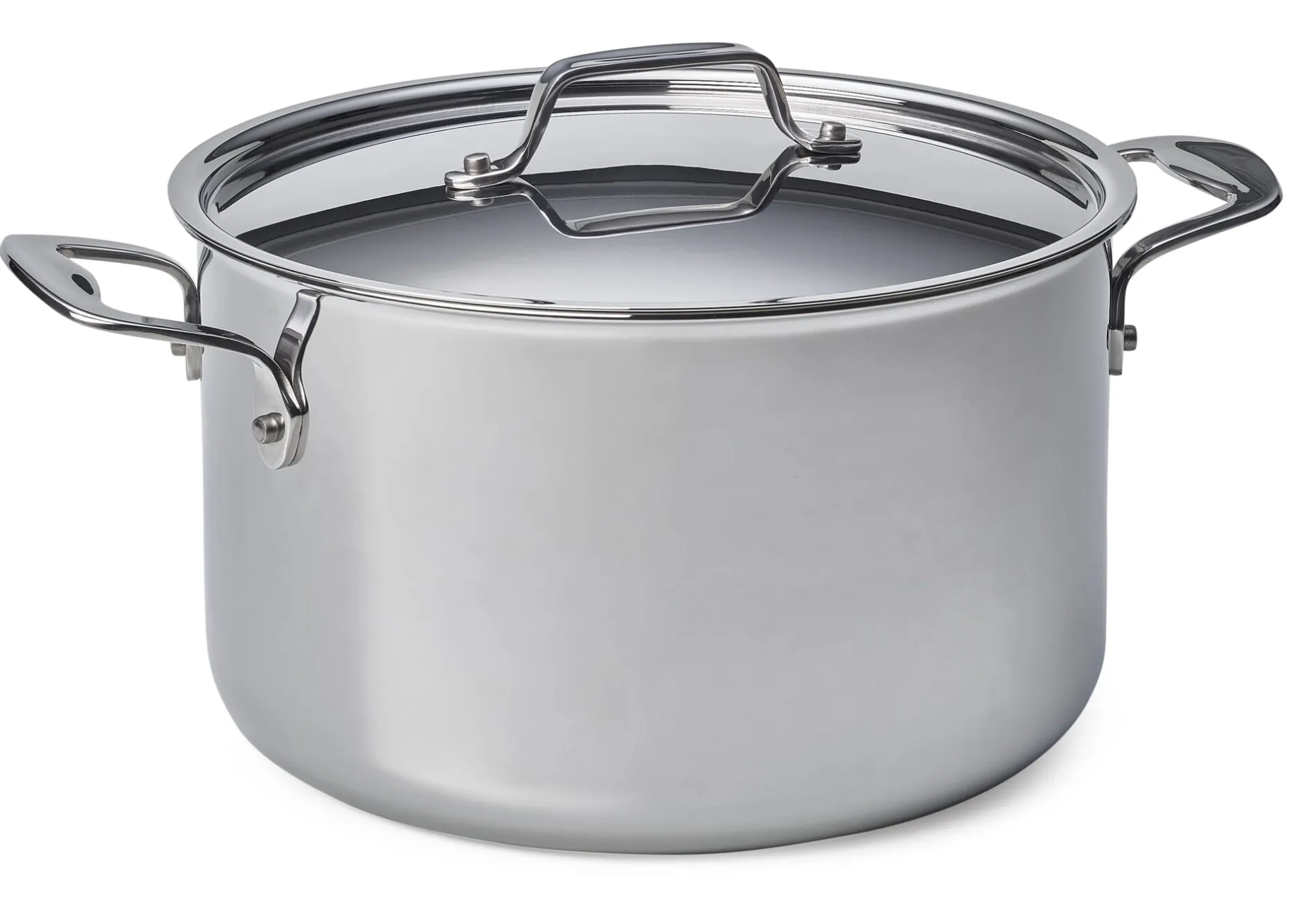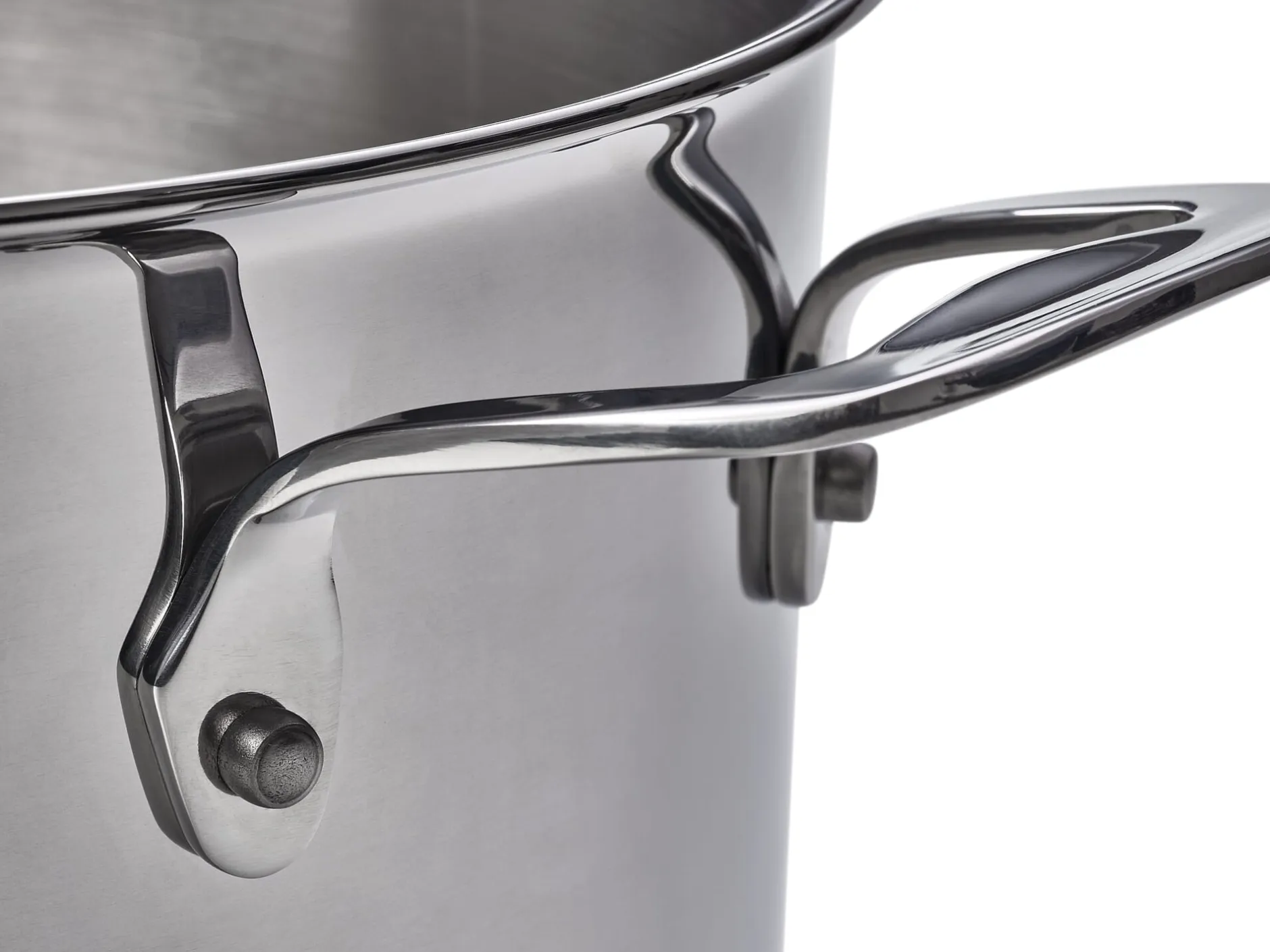 Aus Edelstahl 18/10, hergestellt in Portugal. Mit Deckel. Die Griffe sind genietet. Reinigung in der Spülmaschine möglich.