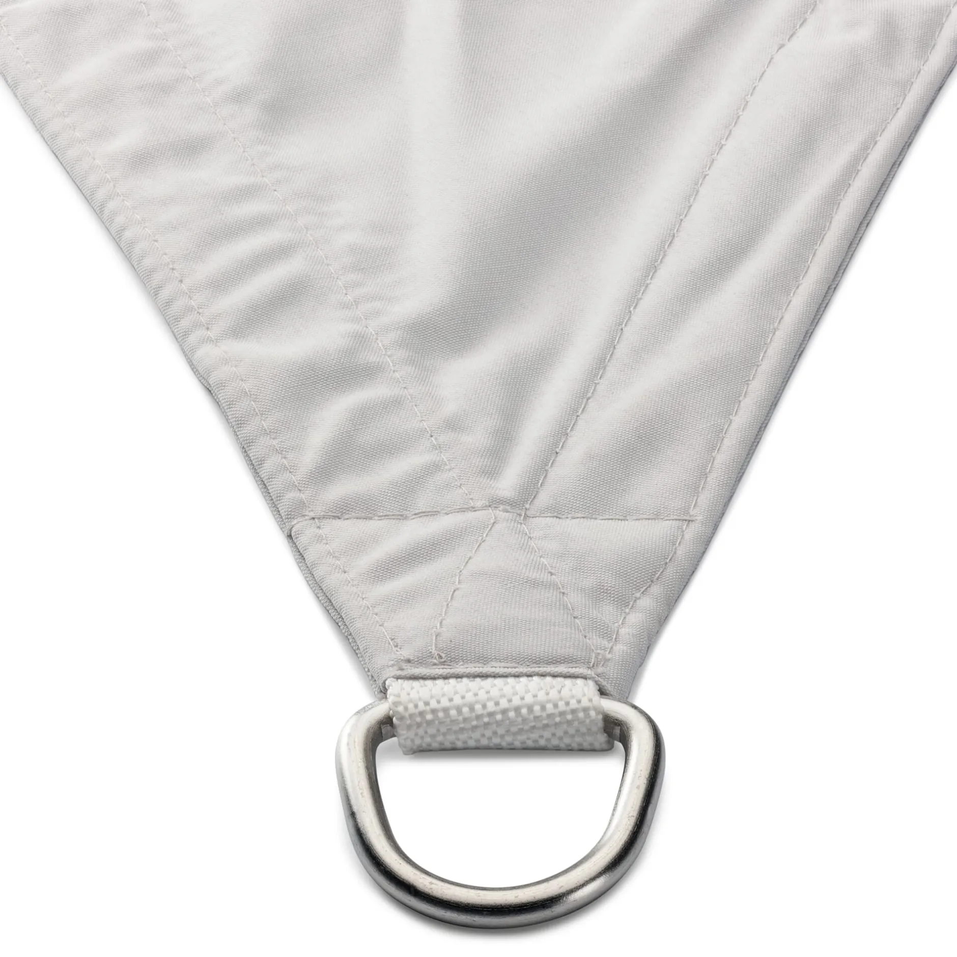 Die Sonnensegel werden an den Segelecken gespannt und sind für leichte bis mittlere Windlasten ausgelegt. Voraussetzung für eine erfolgreiche Sonnensegelmontage von Dreieck- oder Vierecksonnensegeln ist der konkave Schnitt. Durch die Zugkraft der Spanngurte wird das Sonnensegel aus der Mitte heraus glatt gezogen. Das Spannen des Sonnensegels erfordert zugstarke D-Ringe aus Edelstahl, die an dem gurtverstärkten Randsaum befestigt sind. Metallösen würden ausreißen. Nur so halten Dreiecks- oder Vierecksonnensegel die geforderte Dauerspannung aus. Zudem sorgen die Spanngurte der Sonnensegel dafür, dass die Segel Belastungsspitzen bei Windböen bei einem Gewitter standhalten.