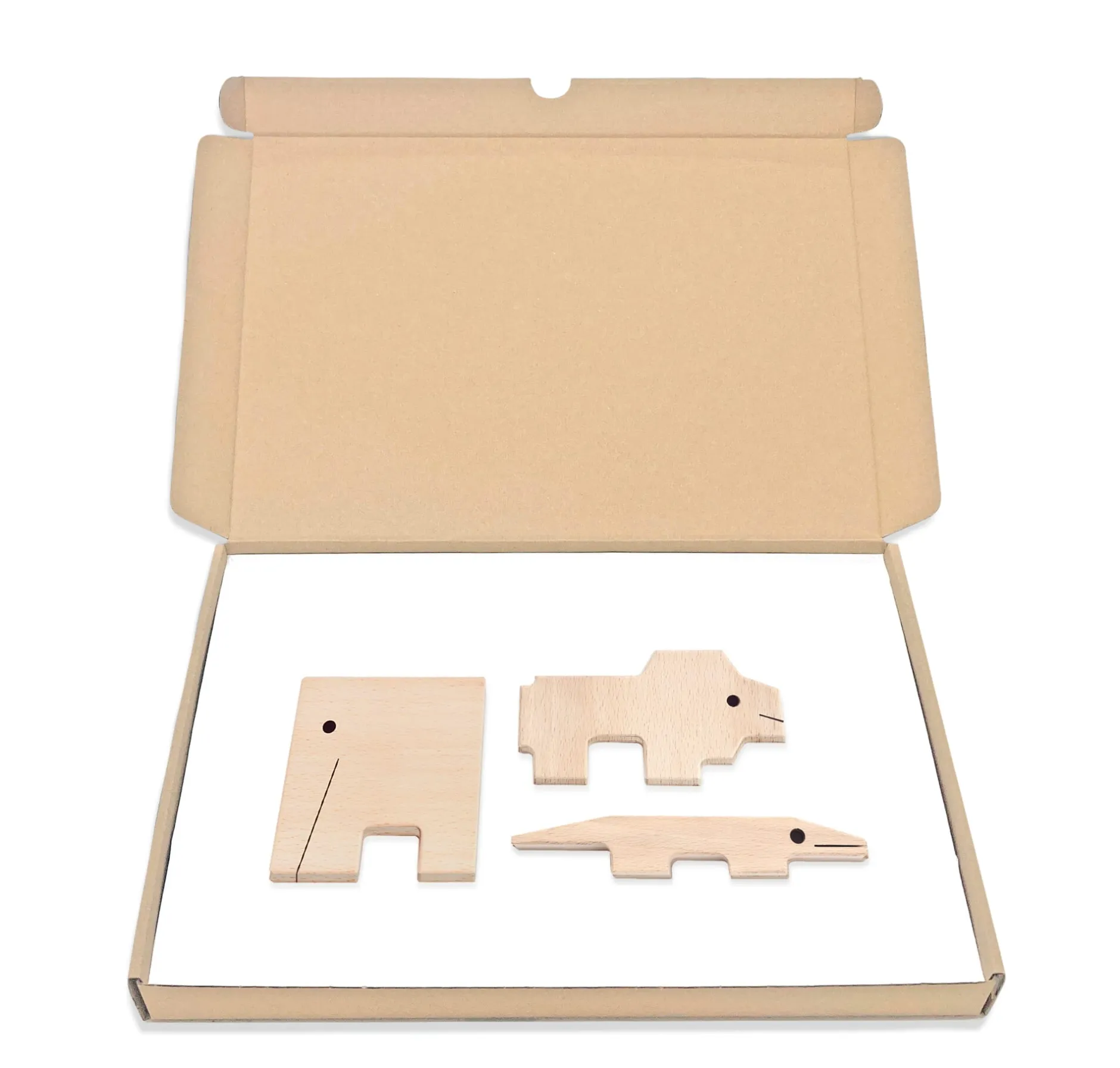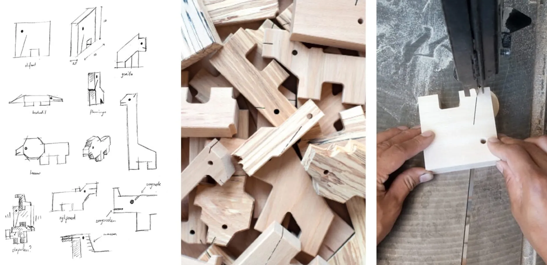 Schatz vom Dachboden: Von der Mutter des Designers vor über 50 Jahren handgefertigt, war dieses stapelbare Holzspielzeug Inspiration des aktuellen Entwurfs der ANIMAL PARADE. Im 3er-Set treten auf: Nashorn, Zebra und Giraffe oder Elefant, Löwe und Krokodile. Hergestellt in den Niederlanden.