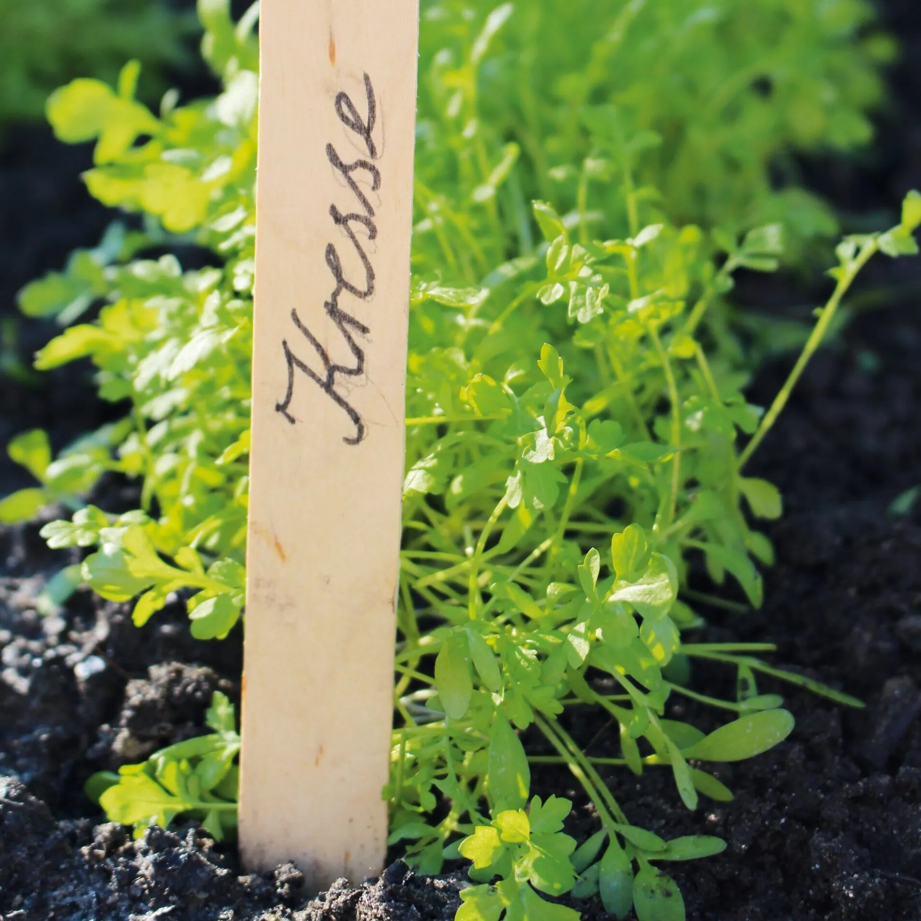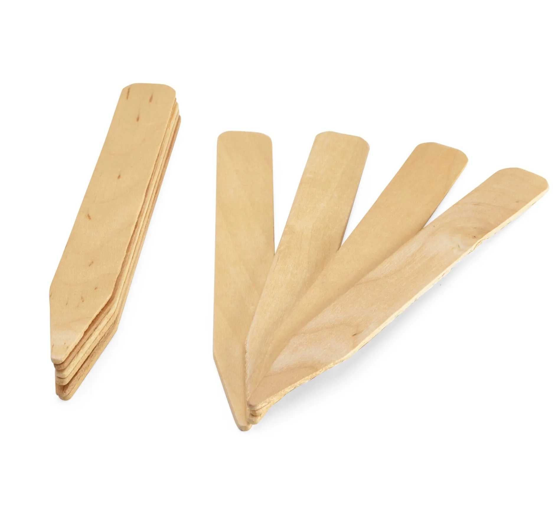 Einfache Stecketiketten aus Birkenholz der Materialstärke 2,5 mm, zur Markierung von Saatreihen oder Jungpflanzen im Freiland. Mit Kugelschreiber oder einem wasserfesten Stift beschreibbar.