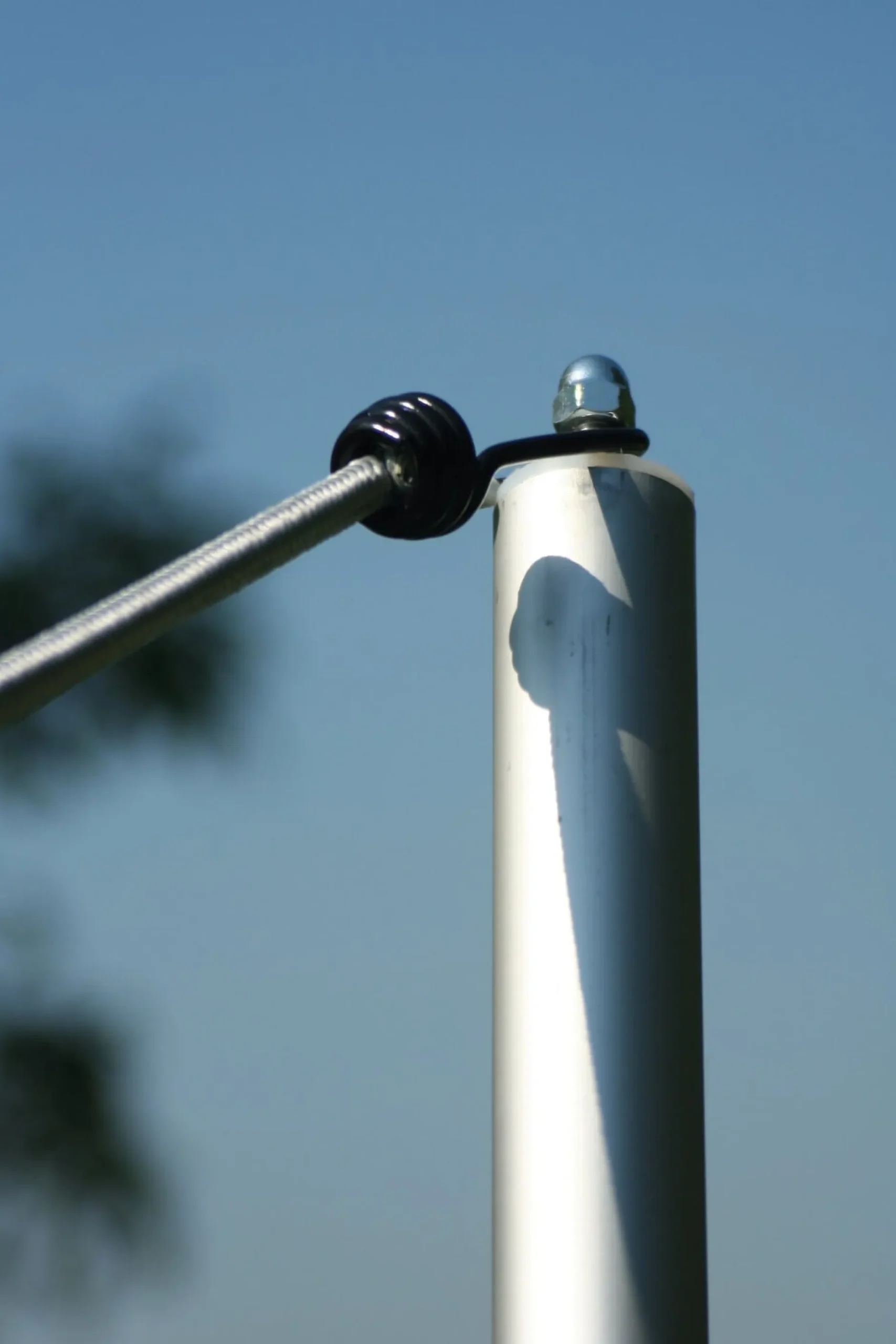- Inklusive 2 Spannschnüren, 2 Heringe zur stabilen Abspannung der Stange