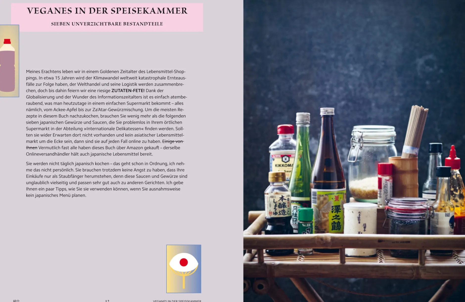Japanküche ganz einfach gesund – köstlich – vegan! Die japanische Küche ist ziemlich vegan-freundlich. Und einfach dazu. Tim Sanderson, Autor von TOKIO STORIES, legt mit diesem Kochbuch nach: 80 Köstlichkeiten von Klassikern wie Gemüsetempura bis zum Pfirsichsorbet mit Sake. Wunderschön ist das Buch obendrein: mit goldgeprägtem Cover und violettem Buchschnitt.