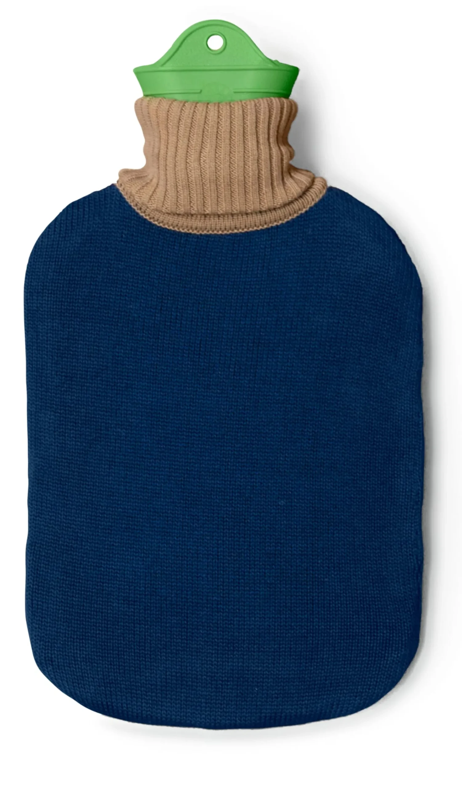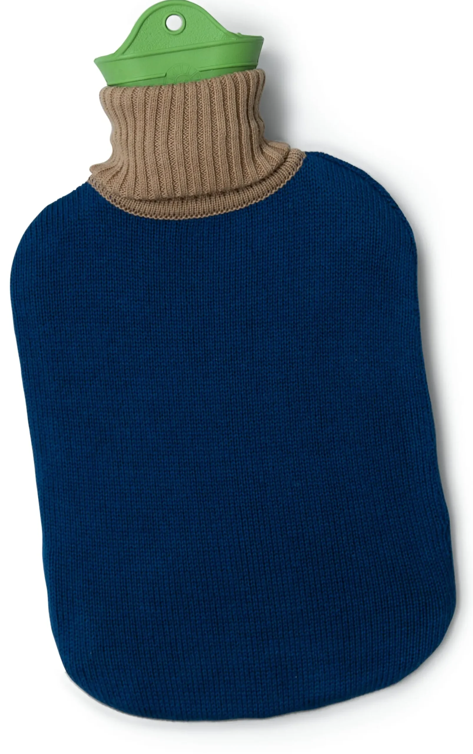 Klassisches Accessoire mit großer Aktualität: die Wärmflasche. SUITE vom gleichnamigen niederländischen Label mit einem Inlett aus Naturkautschuk und aus einem Strickbezug aus Baumwolle. So ist die Hülle schön weich und kratzt nicht. Wärme im Bett oder auf dem Sofa!